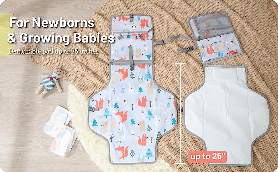 Portable Diaper Changing Pad, Soft Waterproof, Fox Print