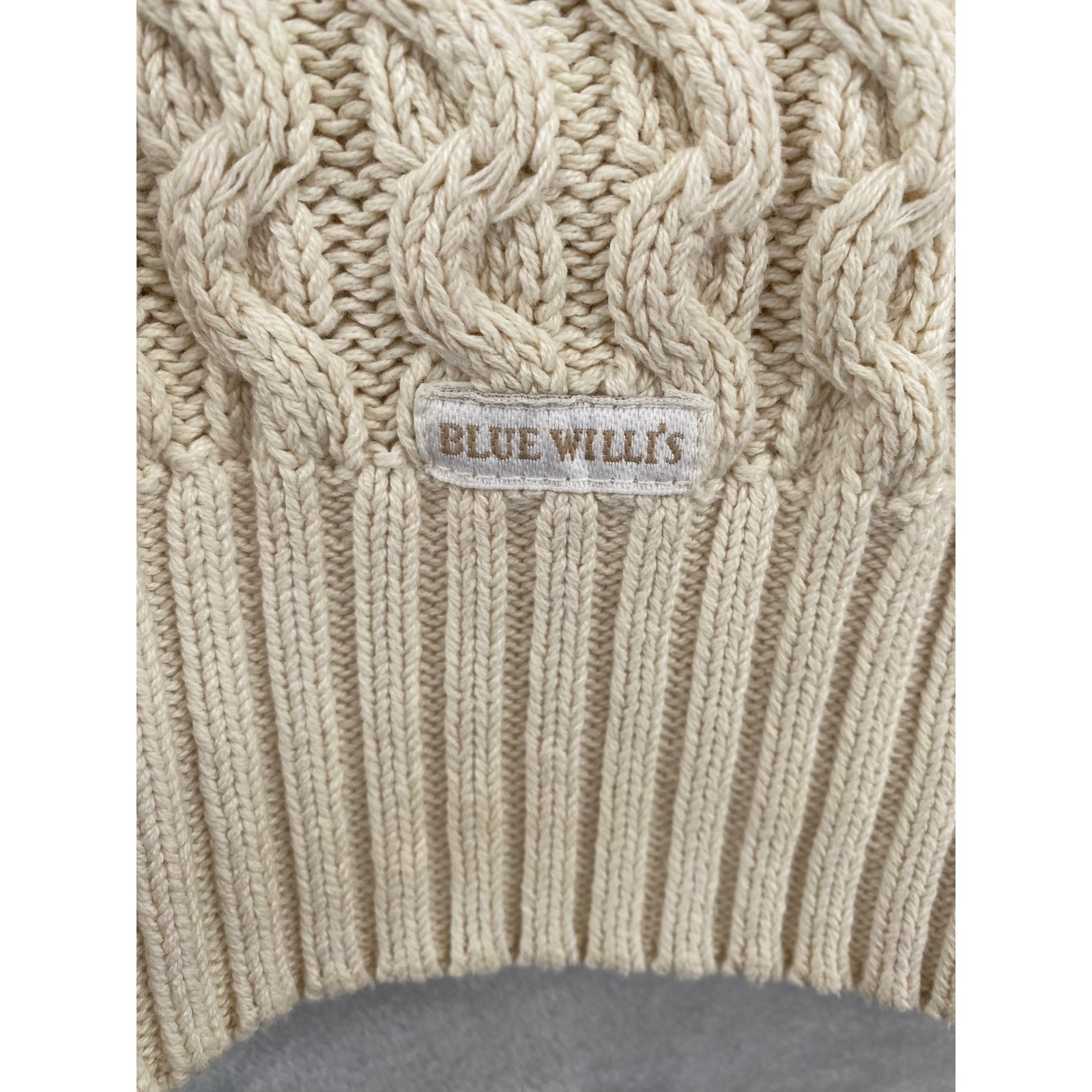 Blue Willi's Cable Knit Sweater Mens L Cream Elbow Patches Cotton Danish Design