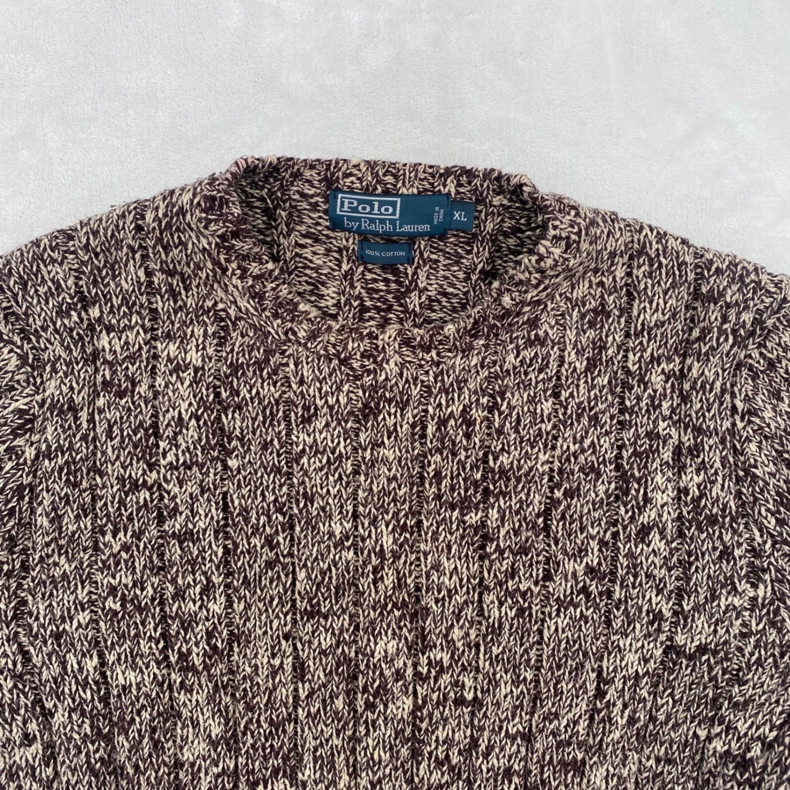 как выглядит Polo Ralph Lauren Sweater Mens XL Brown Speckled Rag Cotton Ribbed Knit Crewneck фото