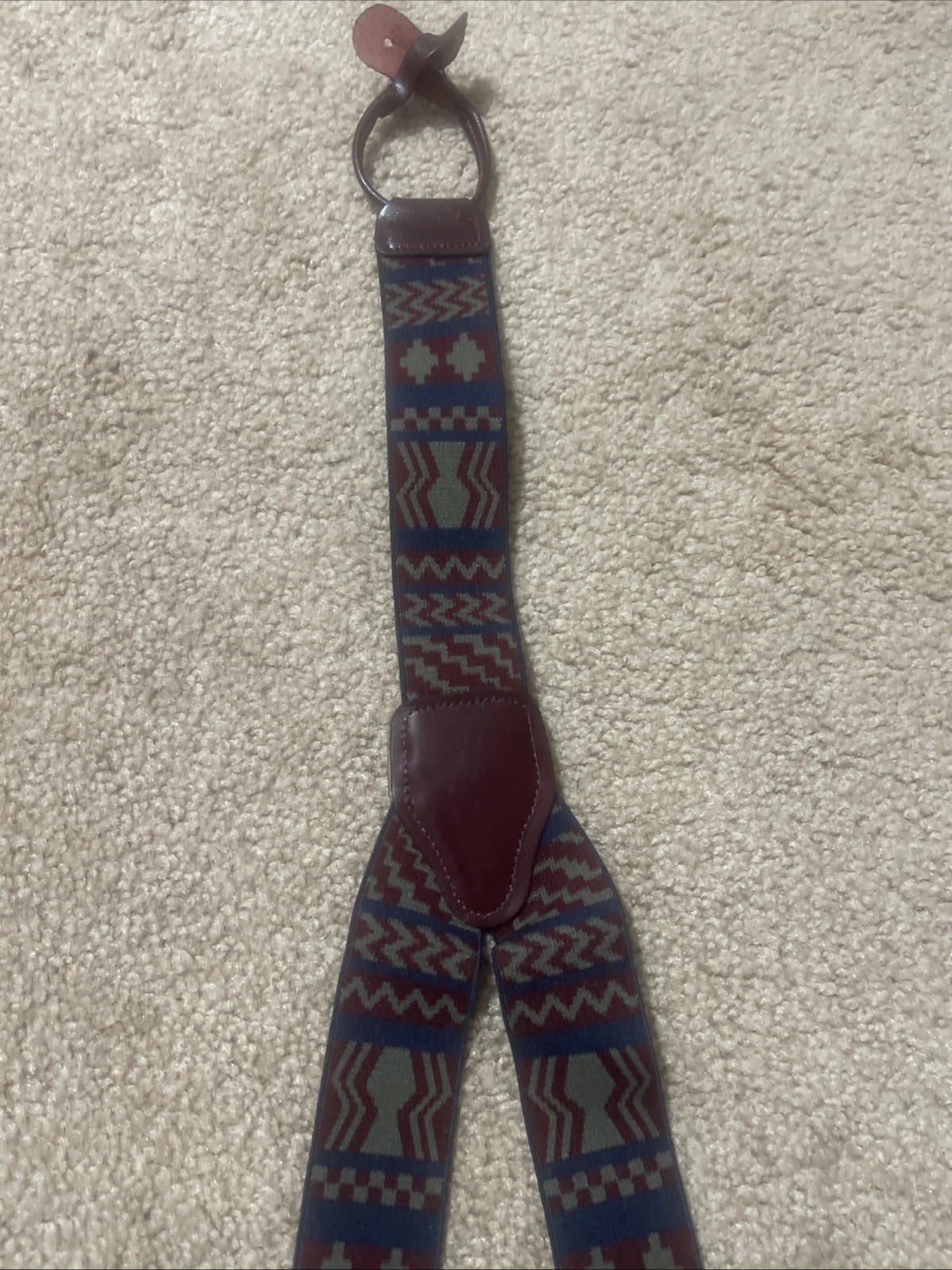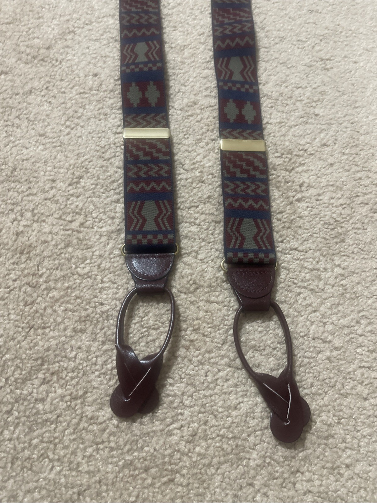 как выглядит Vintage CAS Germany Suspenders Button Braces Leather Geometric Sage Green Preppy фото