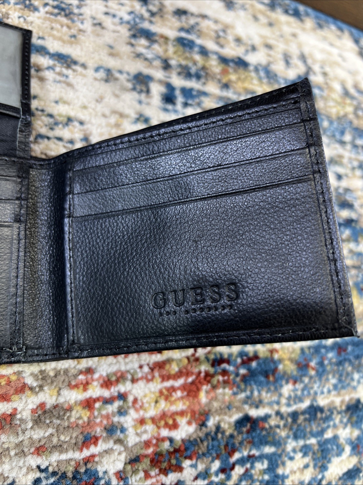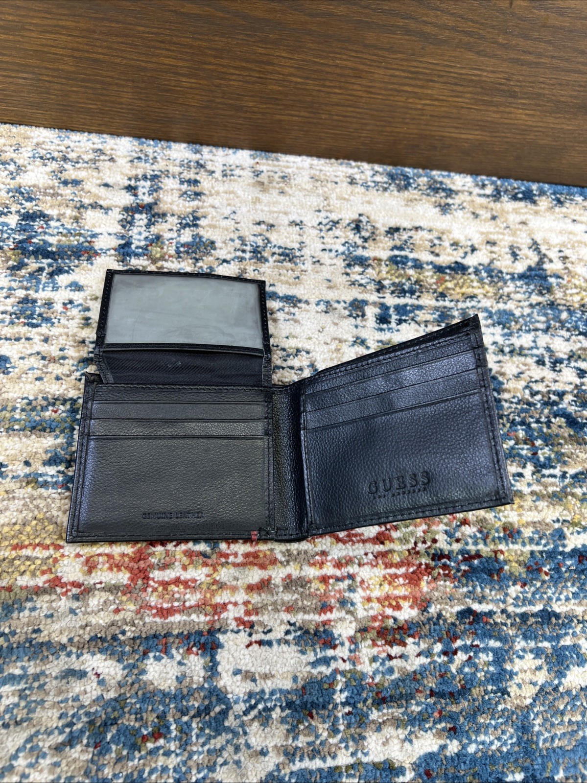 как выглядит Guess Mens Wallet Bifold Genuine Leather Black w/Red -Free Shipping фото