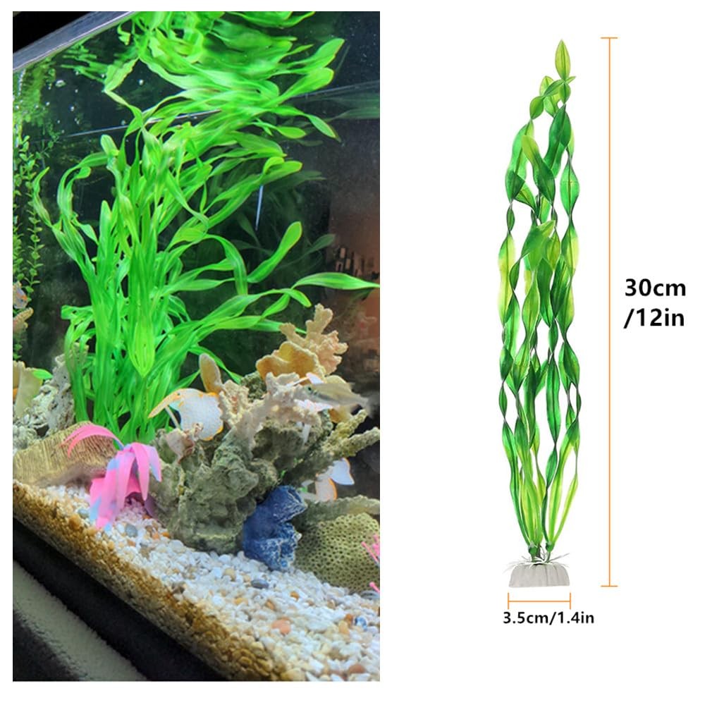 12 Pcs Green Artificial Seaweed Water Plants Plastic Fish Tank Decor