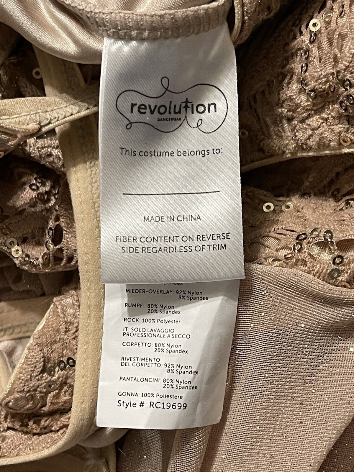 Revolution Small Gold Glitter Lace Dance Costume Leotard Dress
