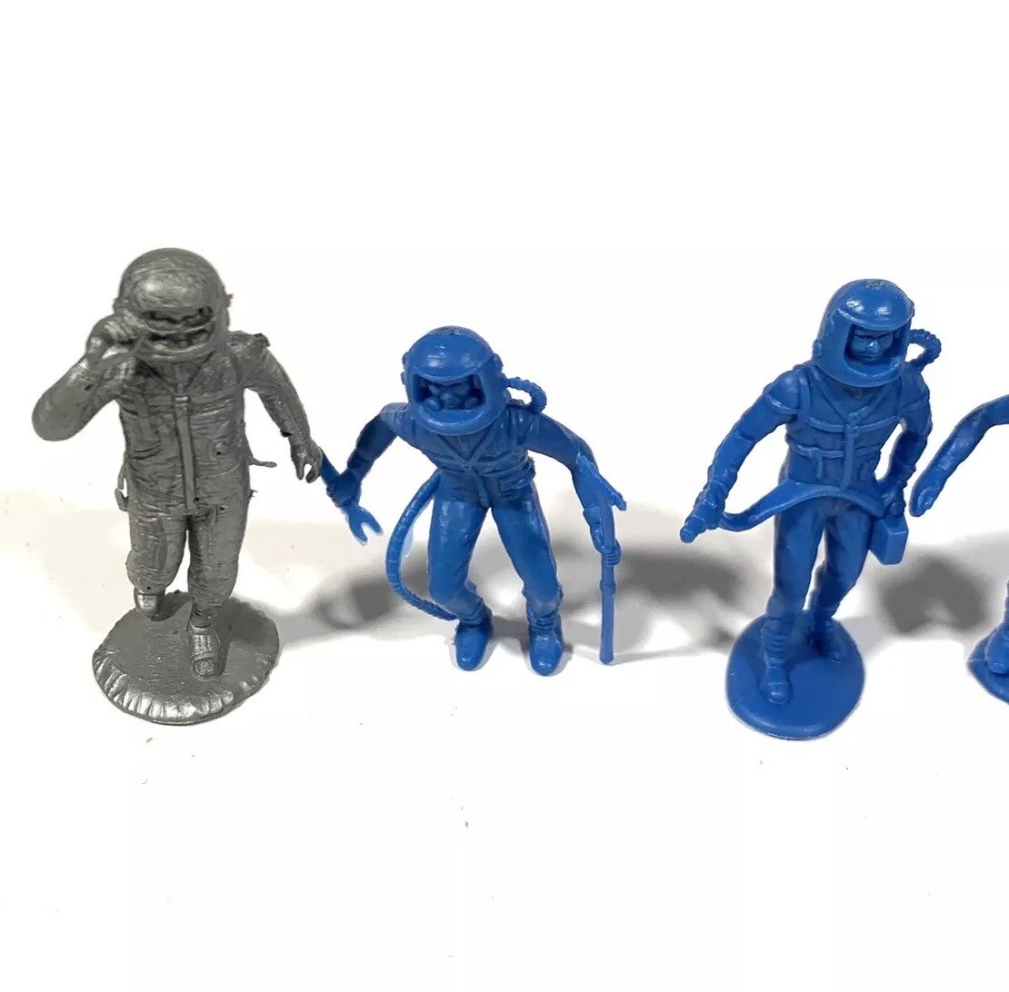 как выглядит Vintage 1960s Lot of 7 MARX MPC Plastic Space Astronaut Toy Figures Blue Silver фото