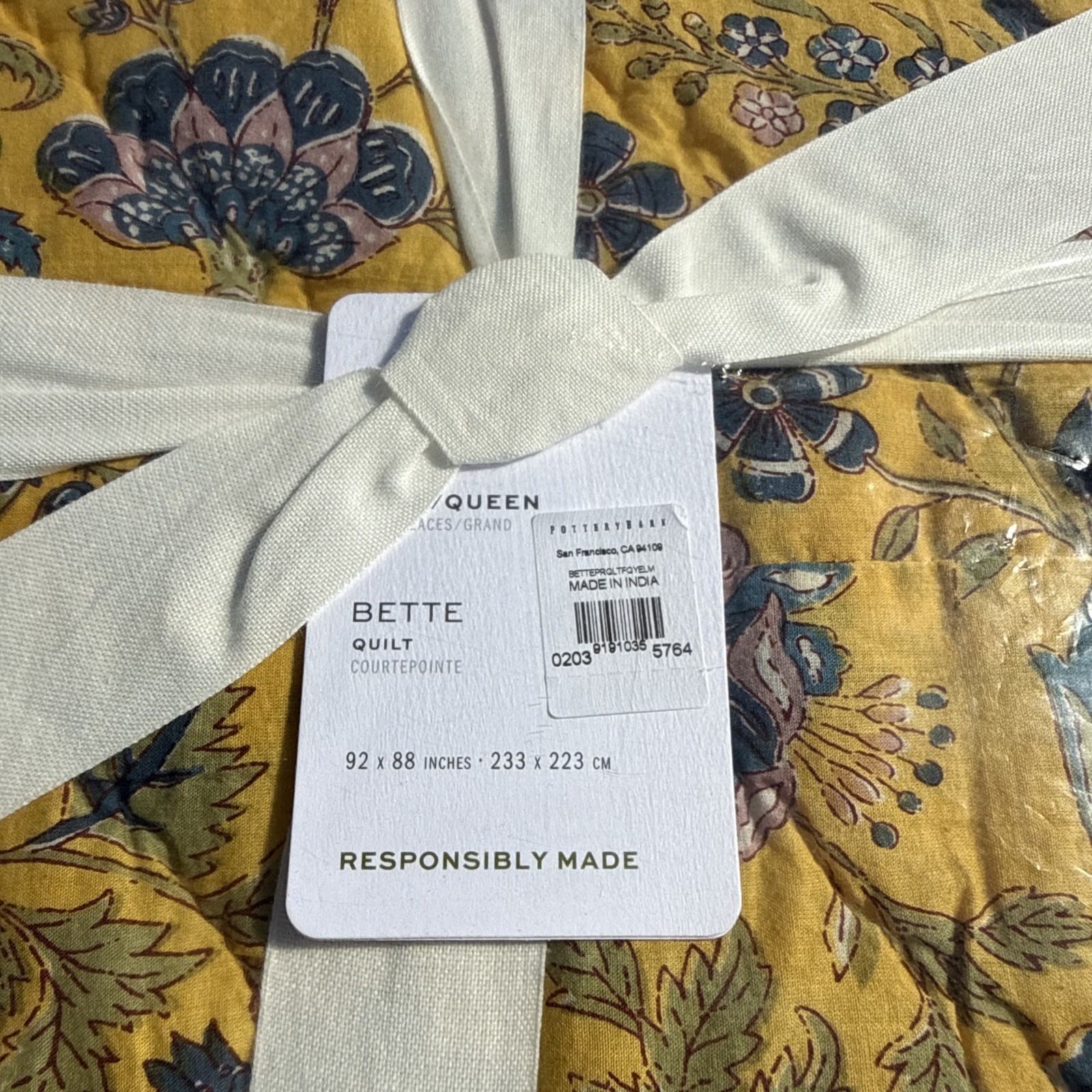 Pottery Barn Bette Handcrafted Reversible Quilt - Full/Queen - Yellow - New
