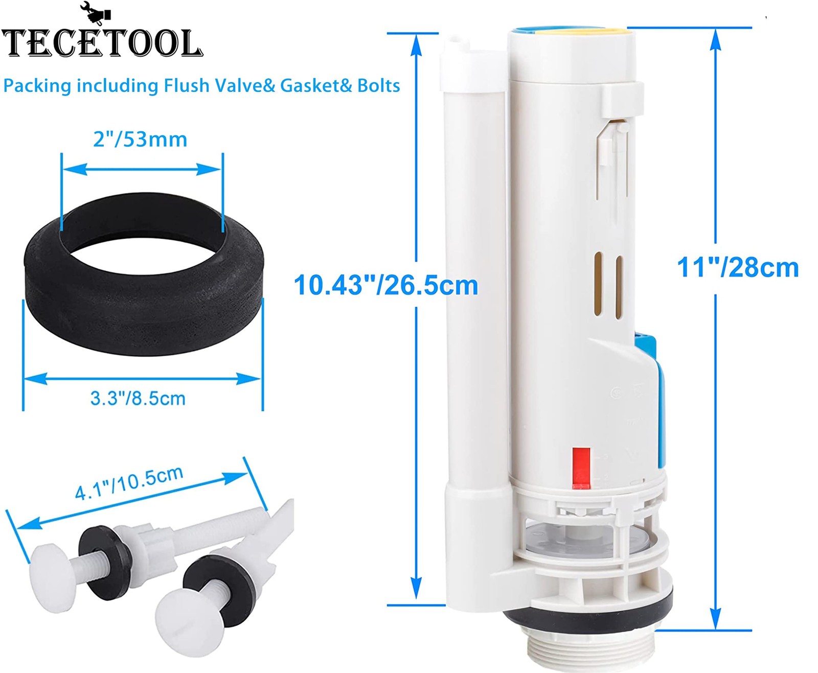 Toilet Flush Valve Replacement Kit 2 Inch Universal Dual Flush White Repair