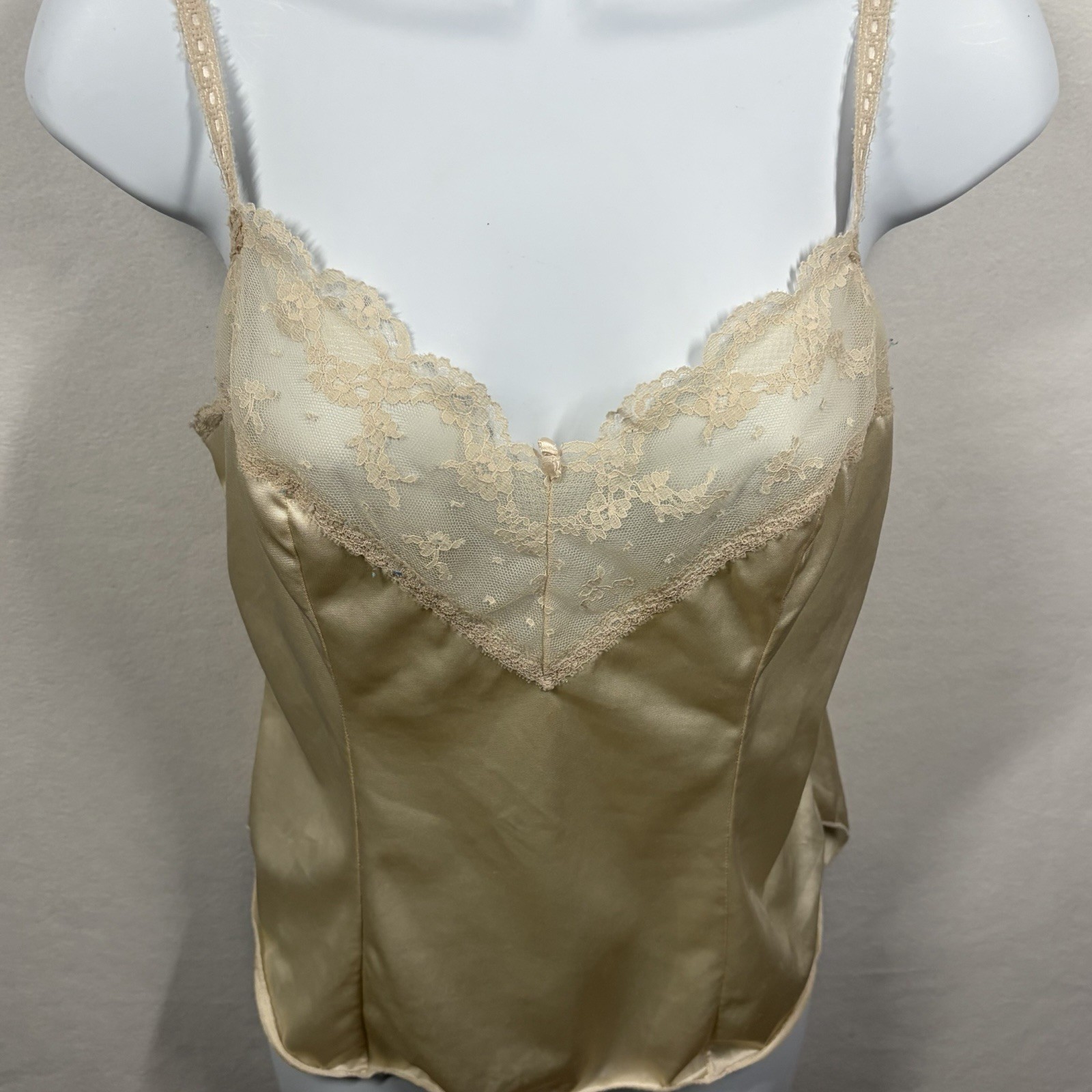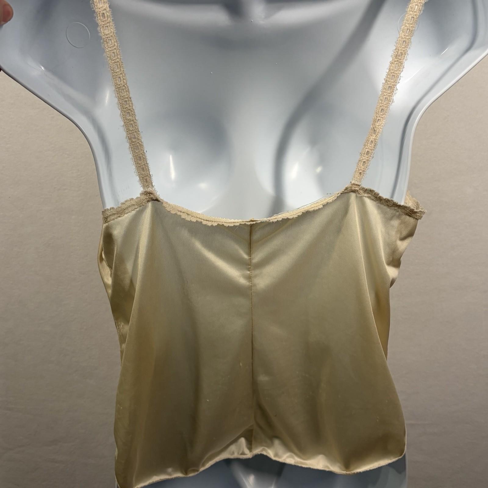 как выглядит Vintage Lace Camisole Womens 34 Cream Lingerie Tank Top Made USA 90s 80s фото