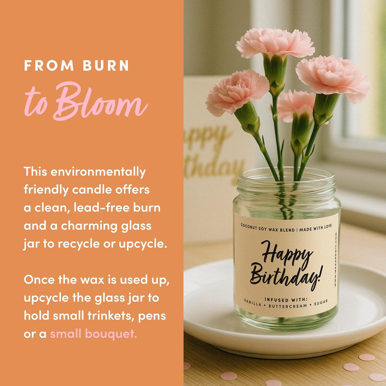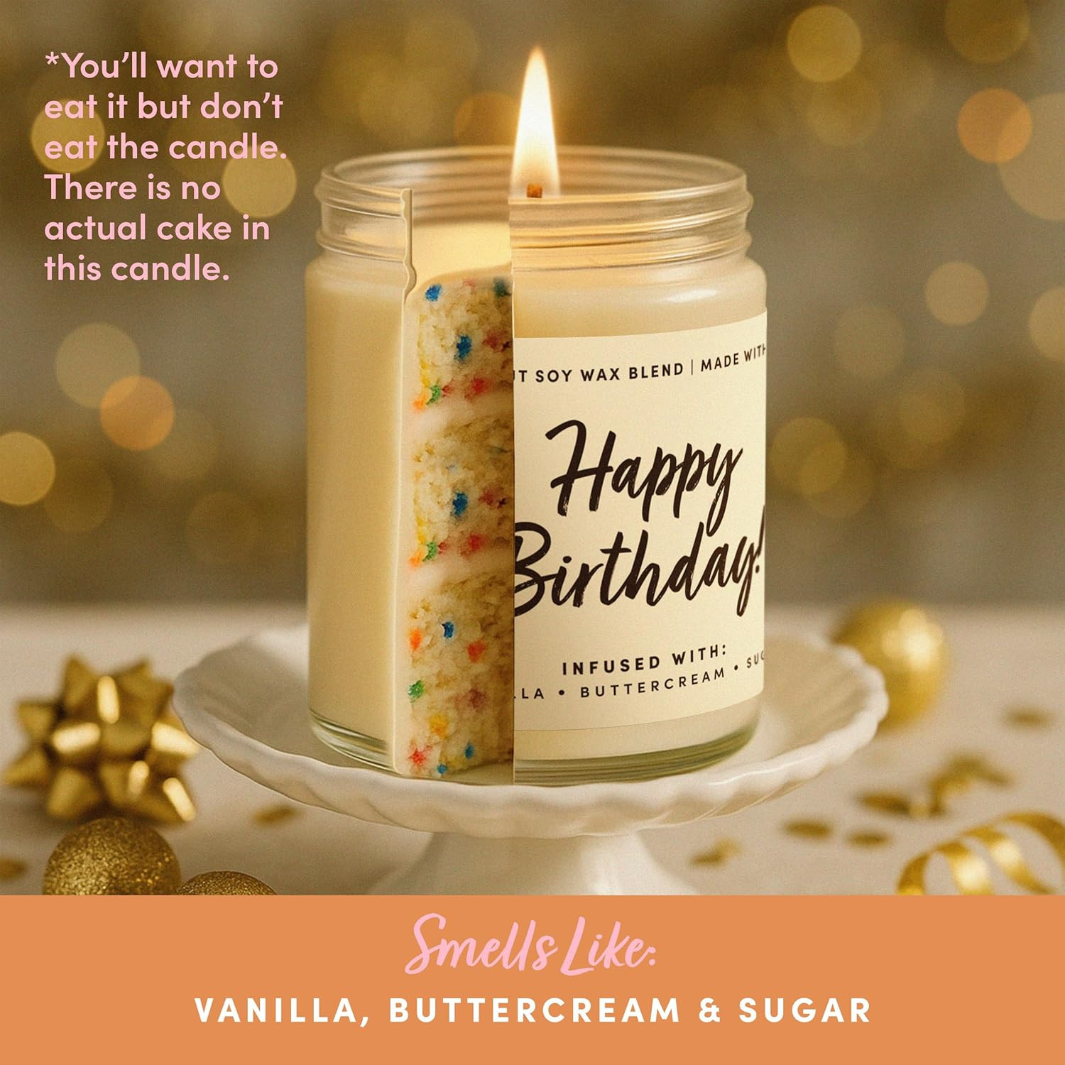 Happy Birthday Soy Candle Vanilla Buttercream Sugar 9oz Jar 50 Hour Burn Time