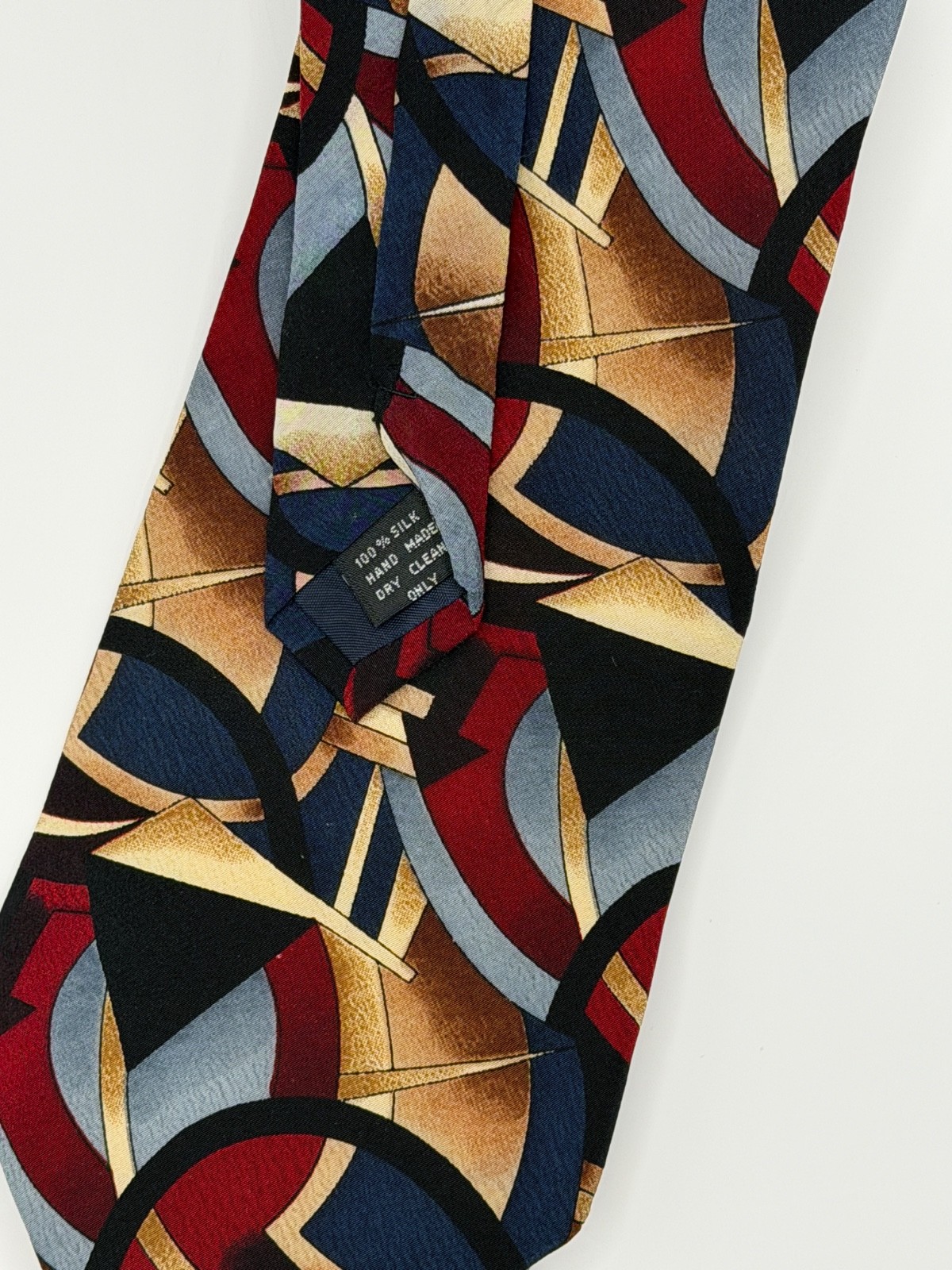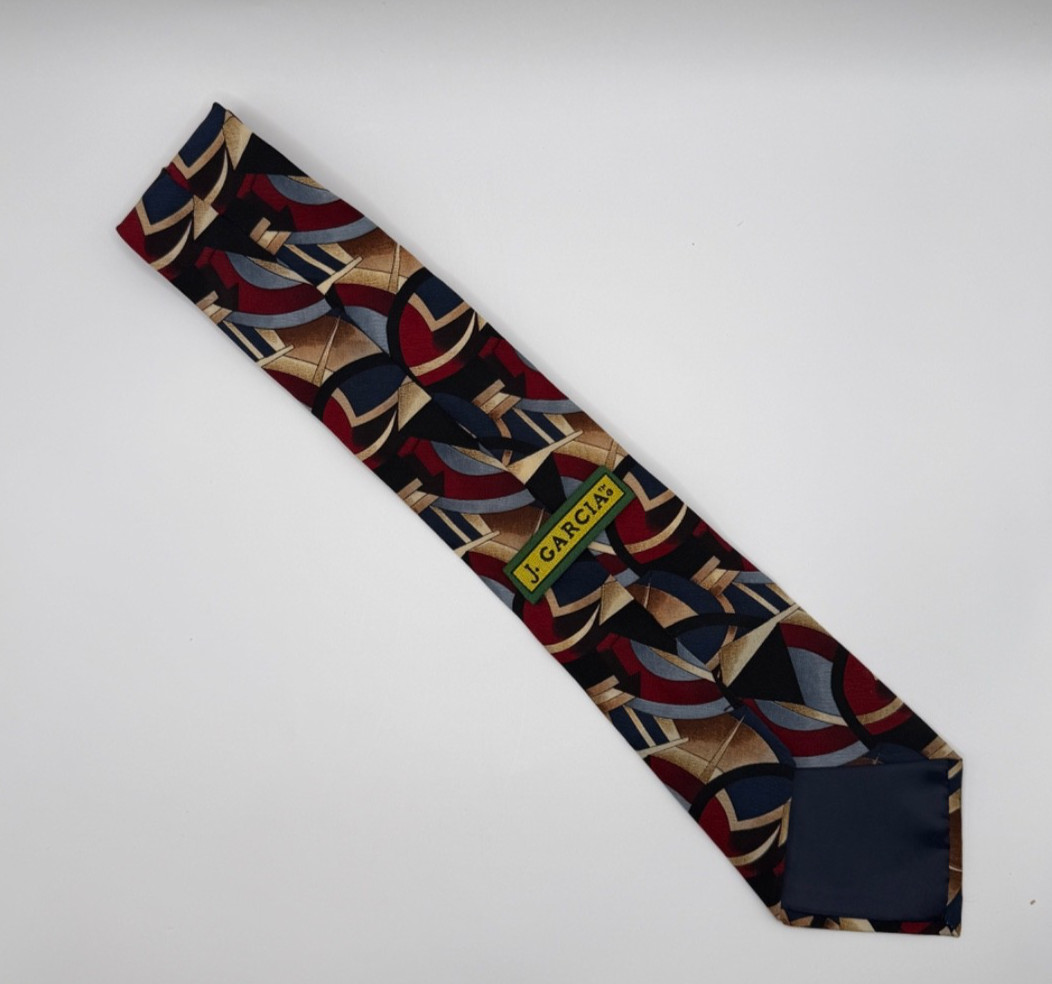 Vintage J. Garcia 100 Silk Abstract Geometric Tie Red Blue Gold Art Necktie