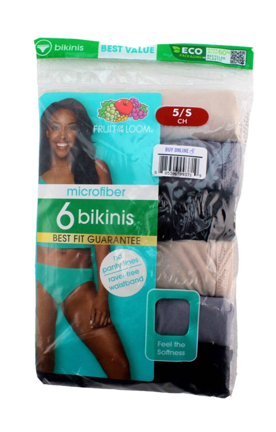 NWT FRUIT of the LOOM 6-pk Size 5 S Soft Microfiber Multi-Color Women Bikinis