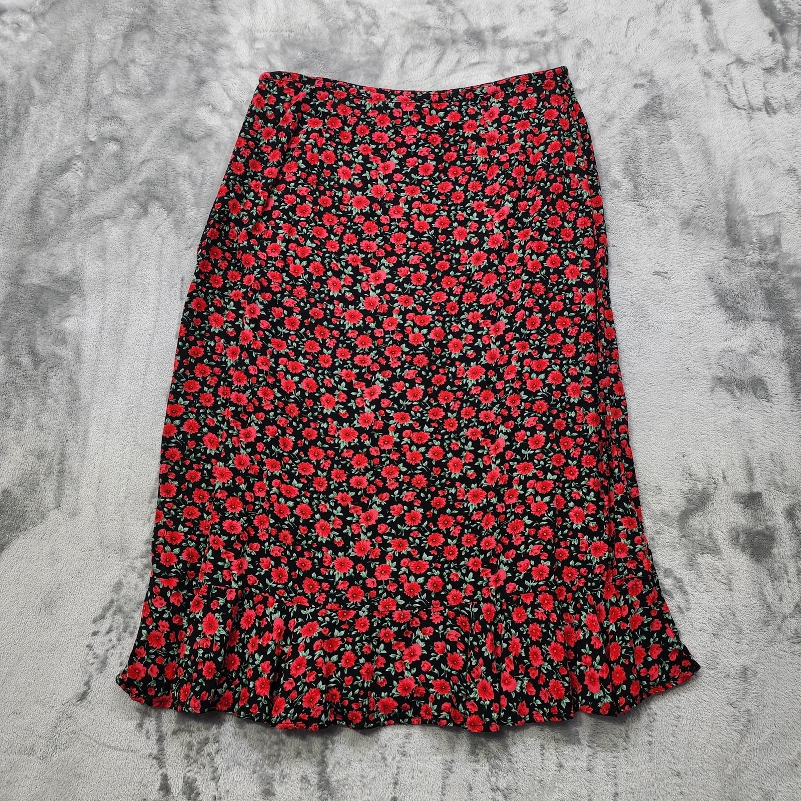 Vintage Christopher Banks Skirt Womens 12 Black Red Floral A-Line Ruffle Hem