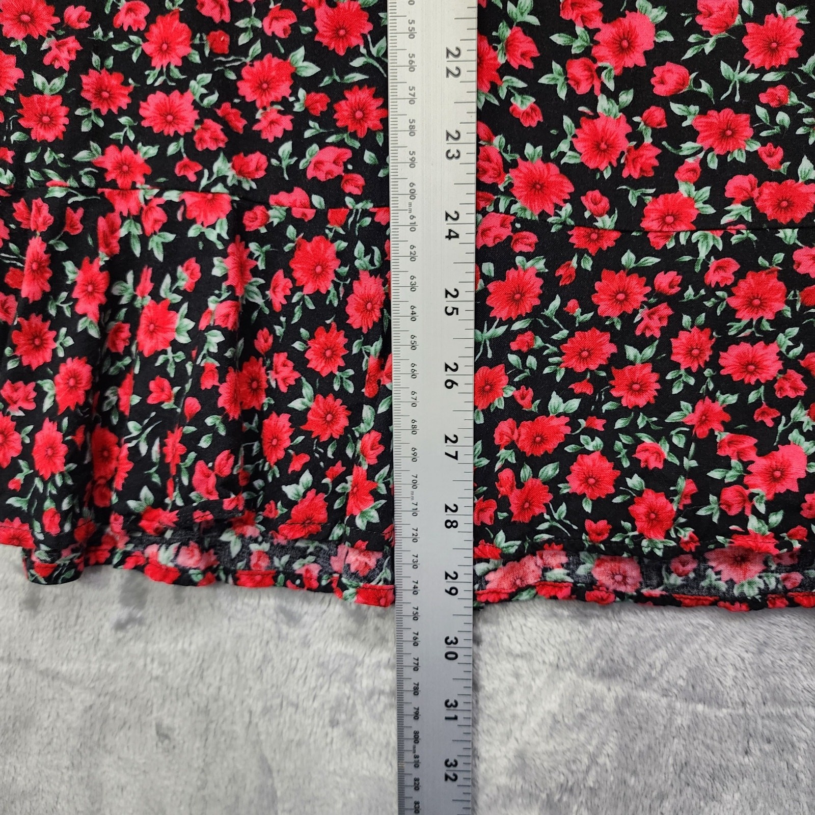 как выглядит Vintage Christopher Banks Skirt Womens 12 Black Red Floral A-Line Ruffle Hem фото