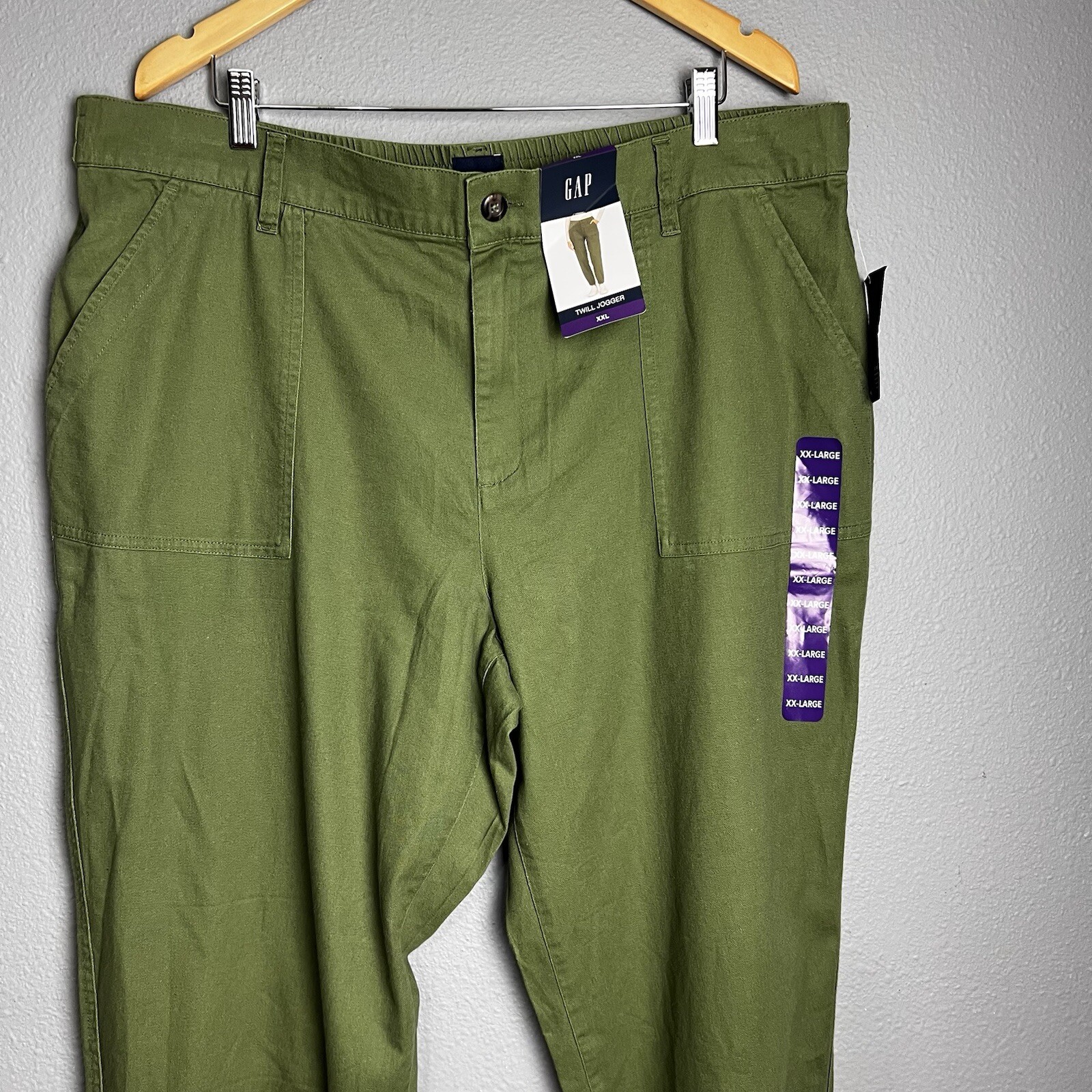 NWT Gap Twill Jogger Olive Green Pants Women Size XXL 42x28 Elastic Back Tapered
