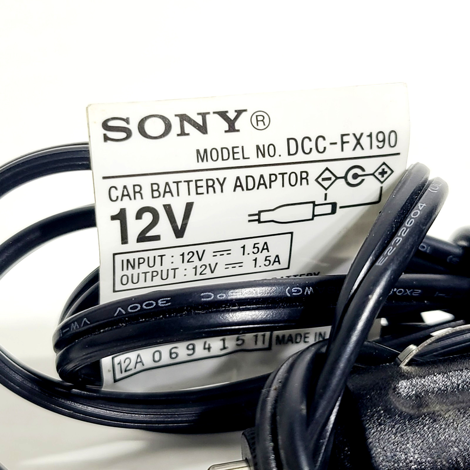 Sony DVD 12v Car Battery Adapter Model No. DCC-FX190 Genuine SONY Product