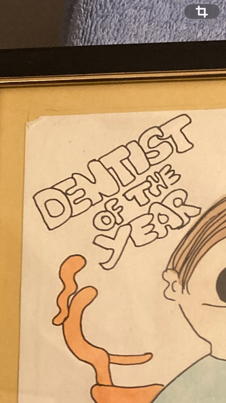 как выглядит VINTAGE 1975 DENTAL OFFICE FRAMED WALL ART DENTIST OF THE YEAR SIGNED M. WESLEY фото