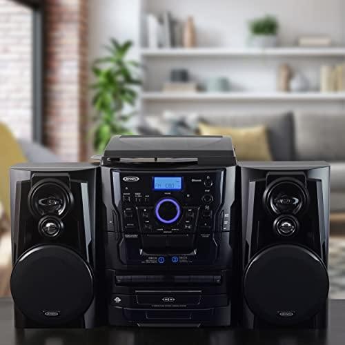 JENSEN Shelf Stereo System with Bluetooth, Turntable, 3-CD Changer Dual Casset