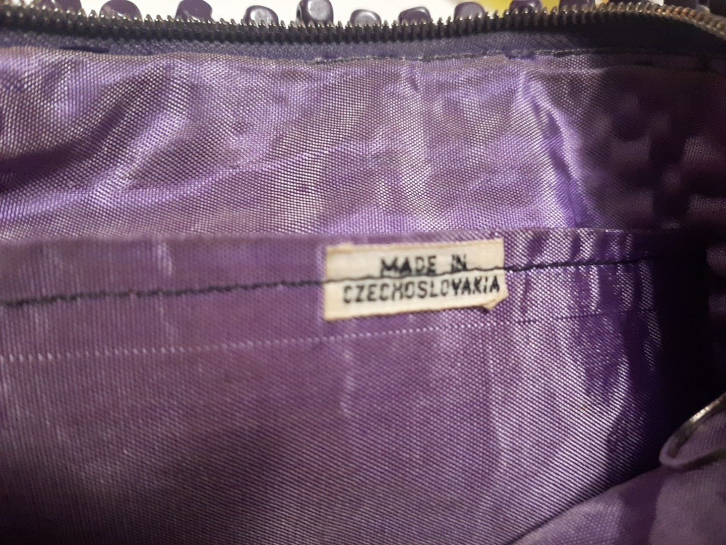 Vtg Deep Purple Beaded Clutch With Satin Interior made in czechosloyakia zipper
