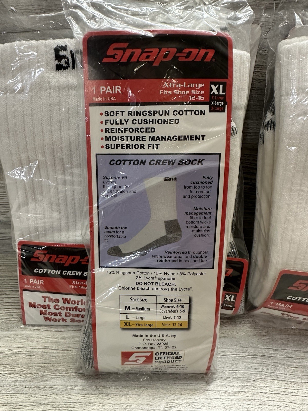 как выглядит 4 PAIRS SNAP-ON Crew Socks Mens WHITE X-LARGE FREE SHIPPING MADE IN USA NEW фото