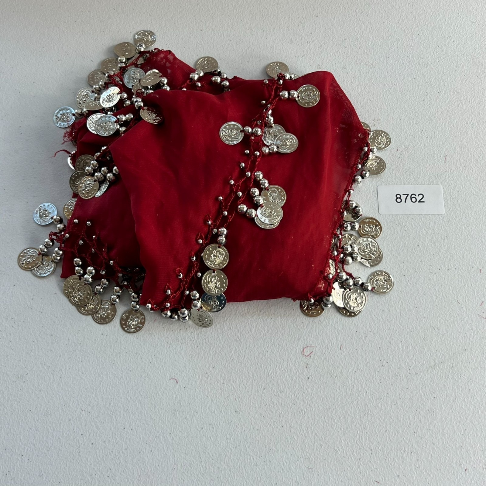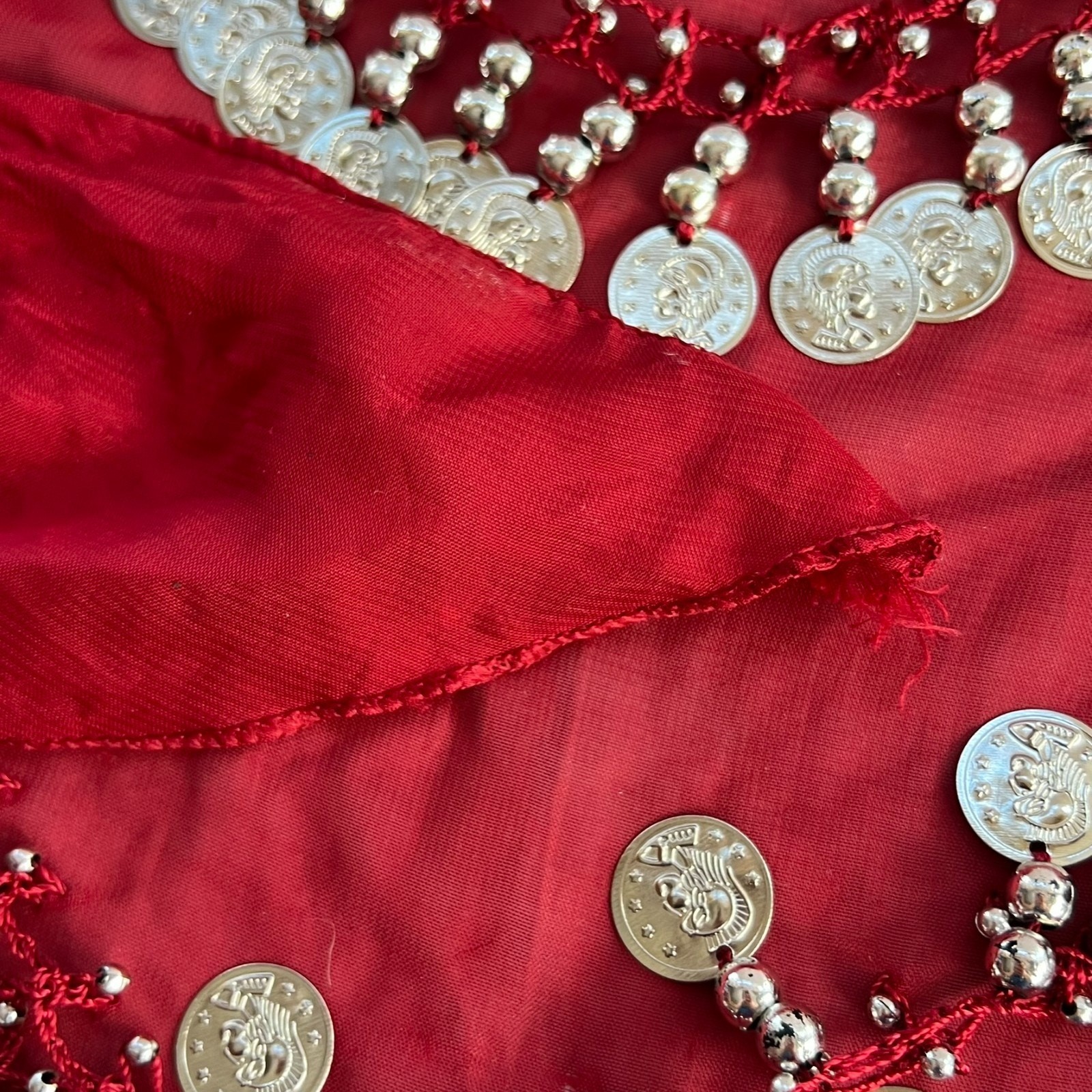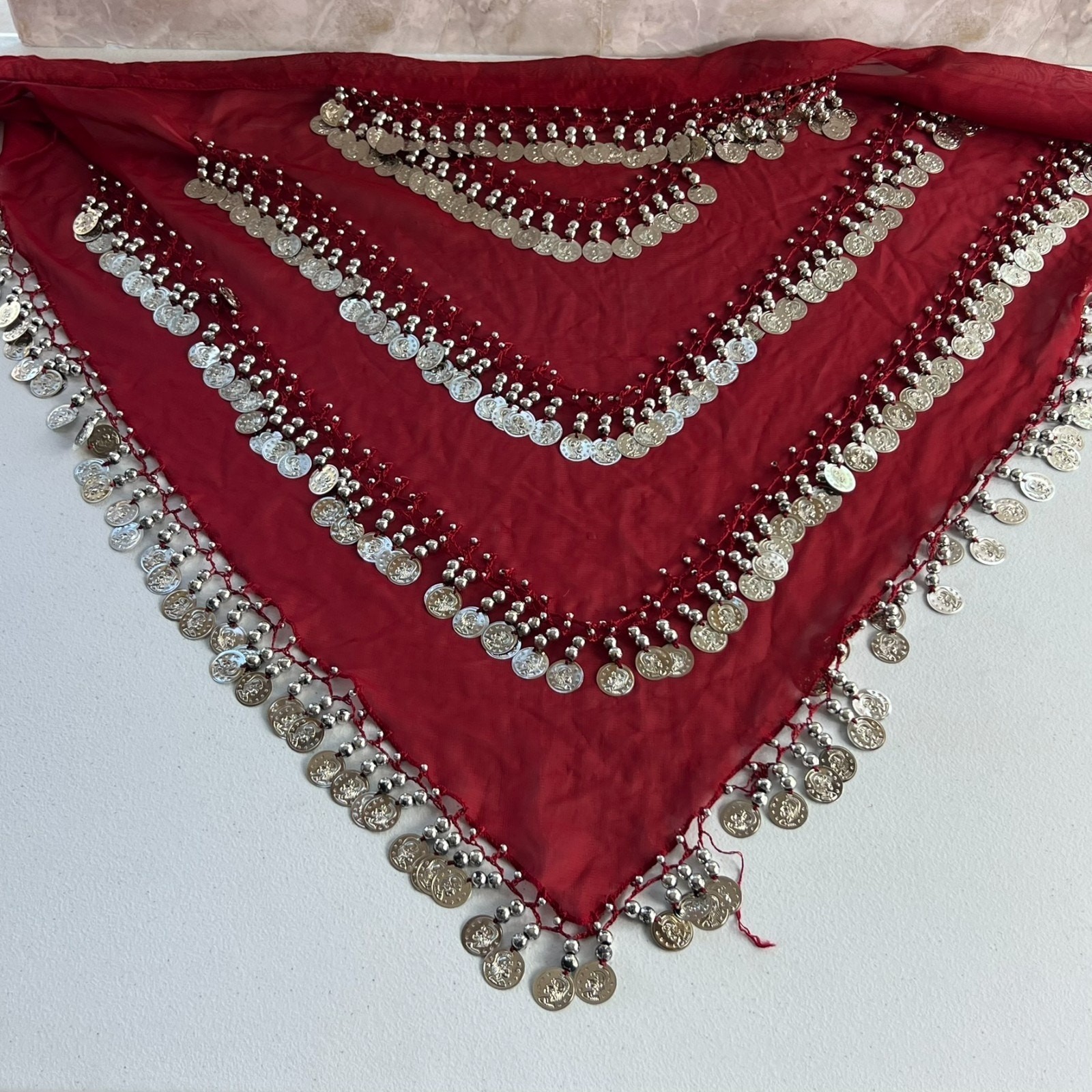 Belly Dance Hip Scarf Triangle Shape Sheer Fabric Faux Silver Coins