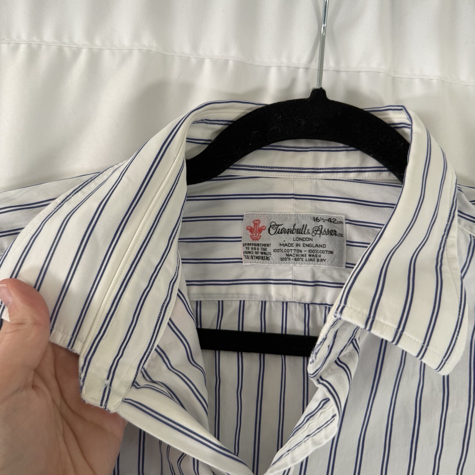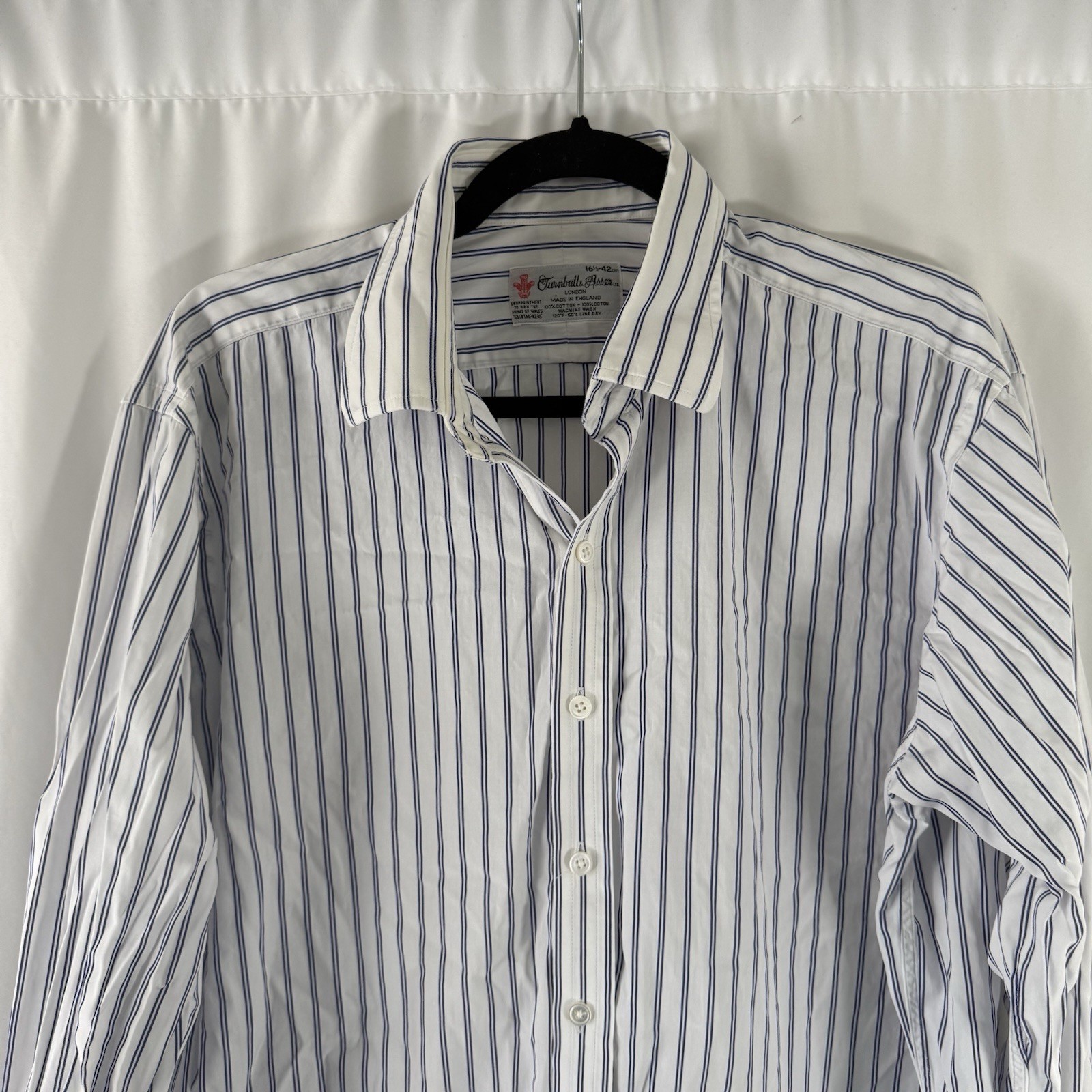 как выглядит Turnbull Asser Dress Shirt Mens 16.5 White Striped French Cuff Button Up фото