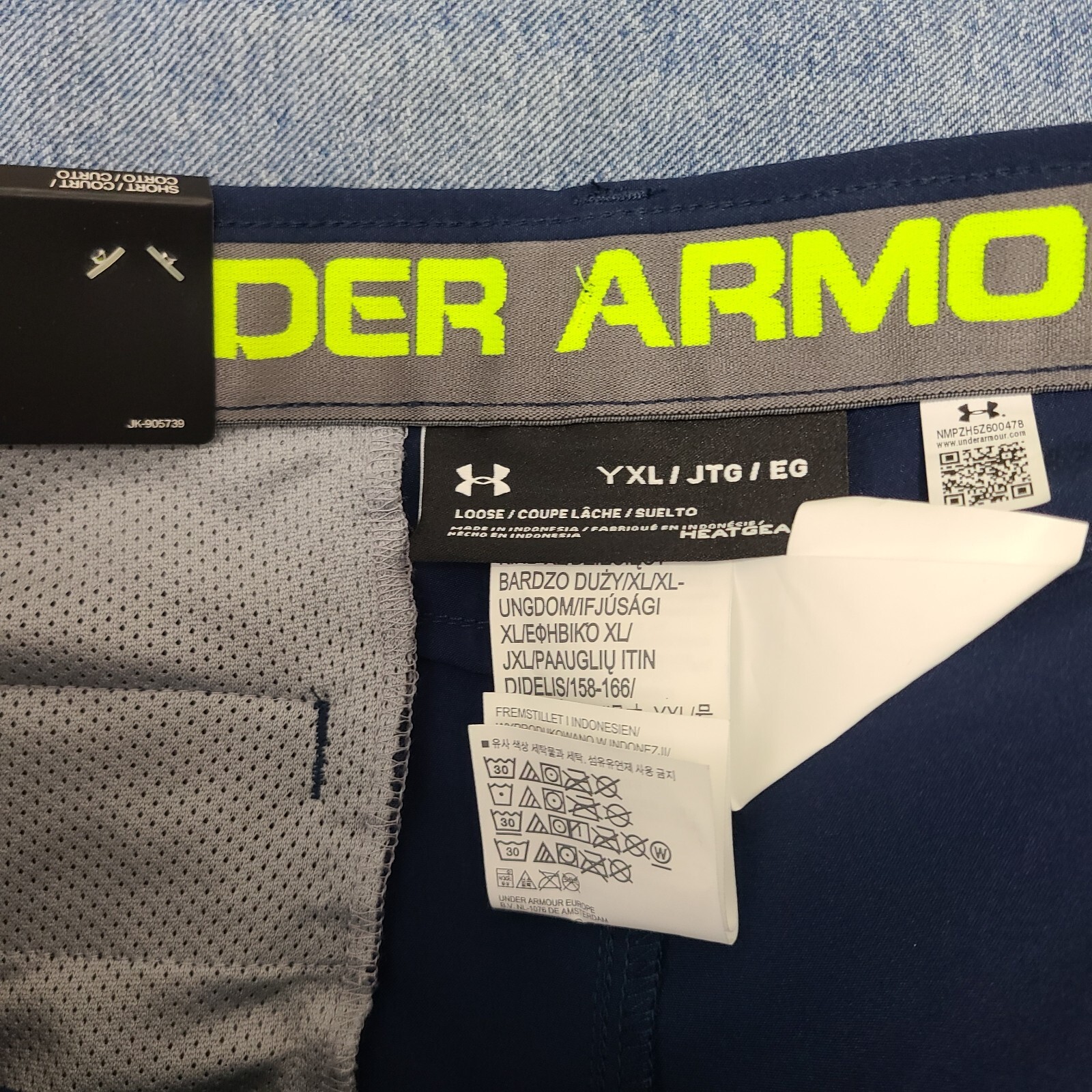 как выглядит Under Armour Shorts Boys Size YXL Navy Blue "11 Inseam Golf Loose Heatgear Chino фото