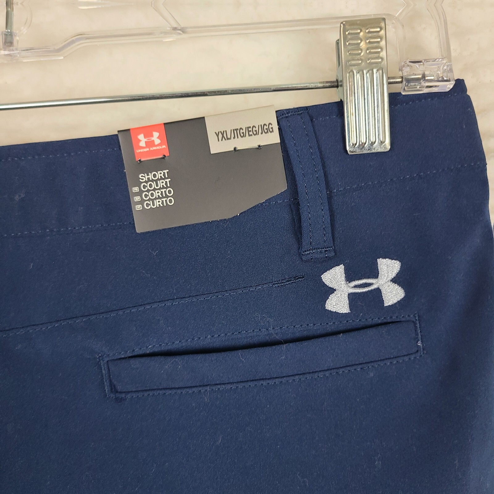 Under Armour Shorts Boys Size YXL Navy Blue 11 Inseam Golf Loose Heatgear Chino