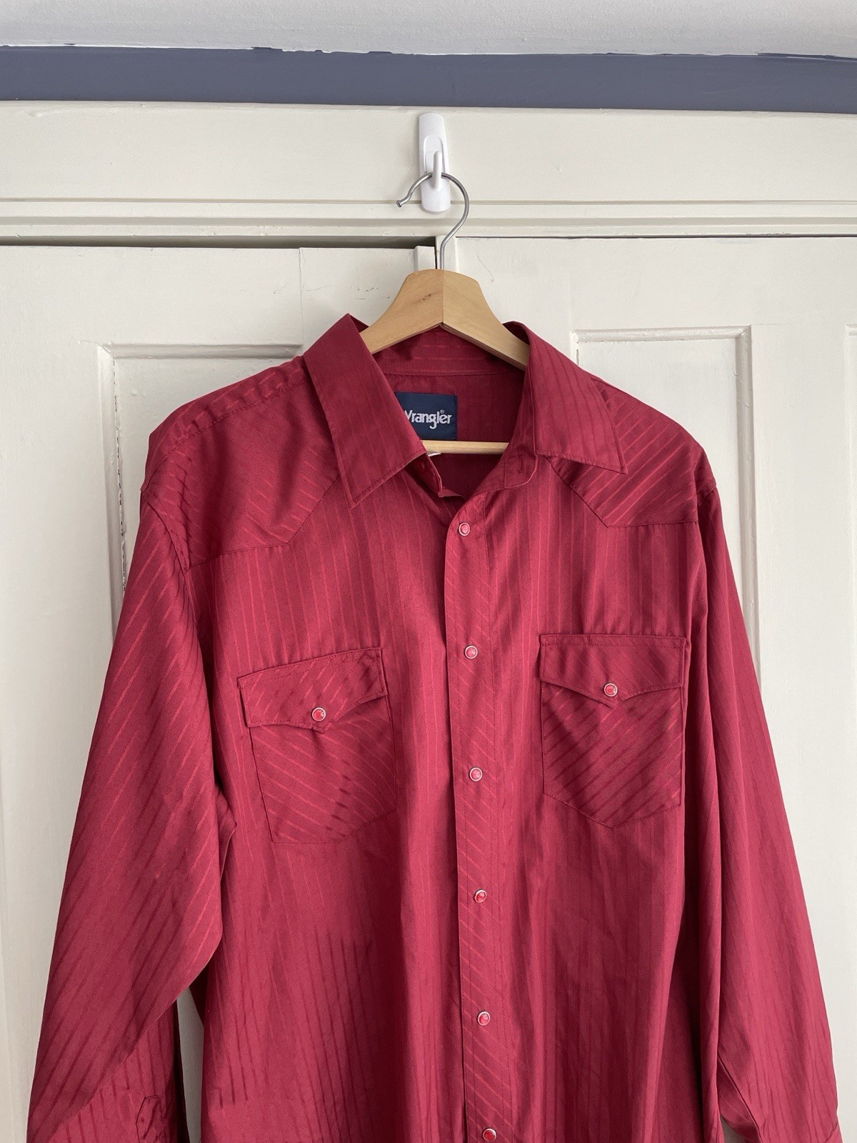 как выглядит Wrangler Western Cowboy Shirt Mens Red Stripe Casual Button Down Pearl Snaps XL фото