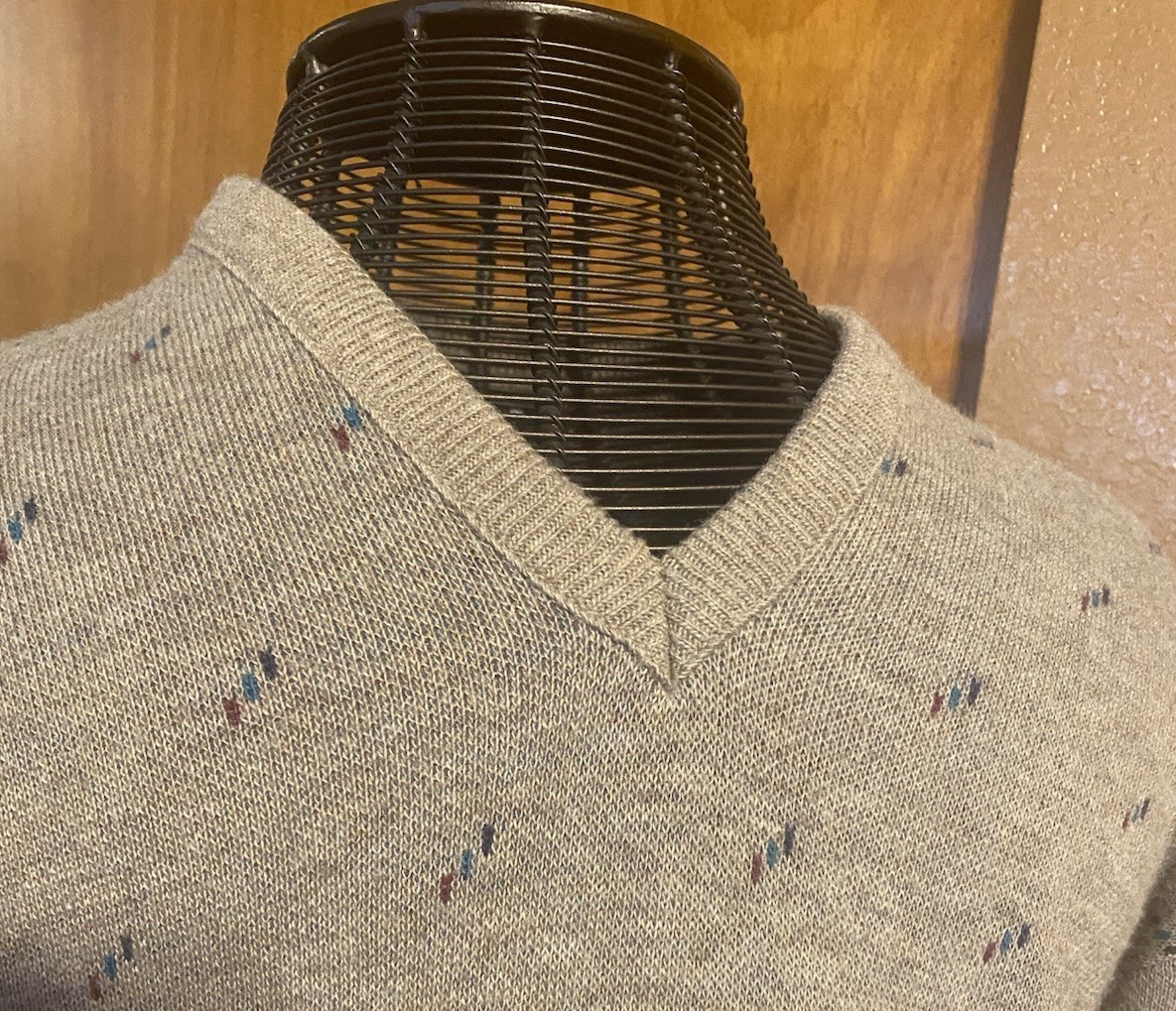 как выглядит Robert Bruce Made In USA Mens Tan V-Neck Sweater Medium Vintage Classic Knit фото