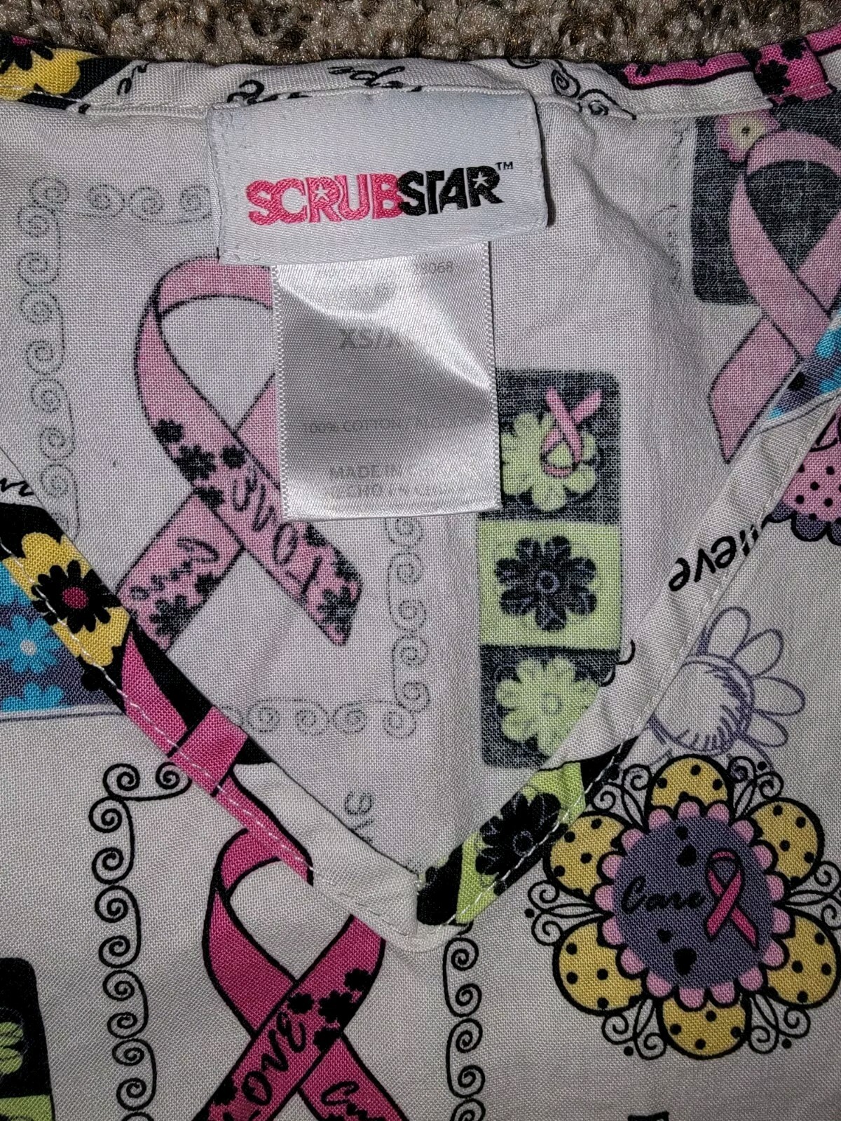 как выглядит Scrubstar Theme Breast Cancer Awareness Day Womens Medical Scrub Top XSmall фото