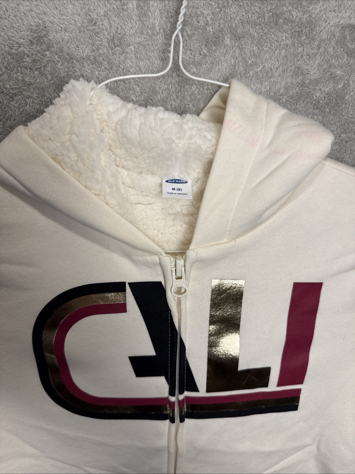 Old Navy Kids Warm Cream Gray Cali hooded jacket. Size Medium