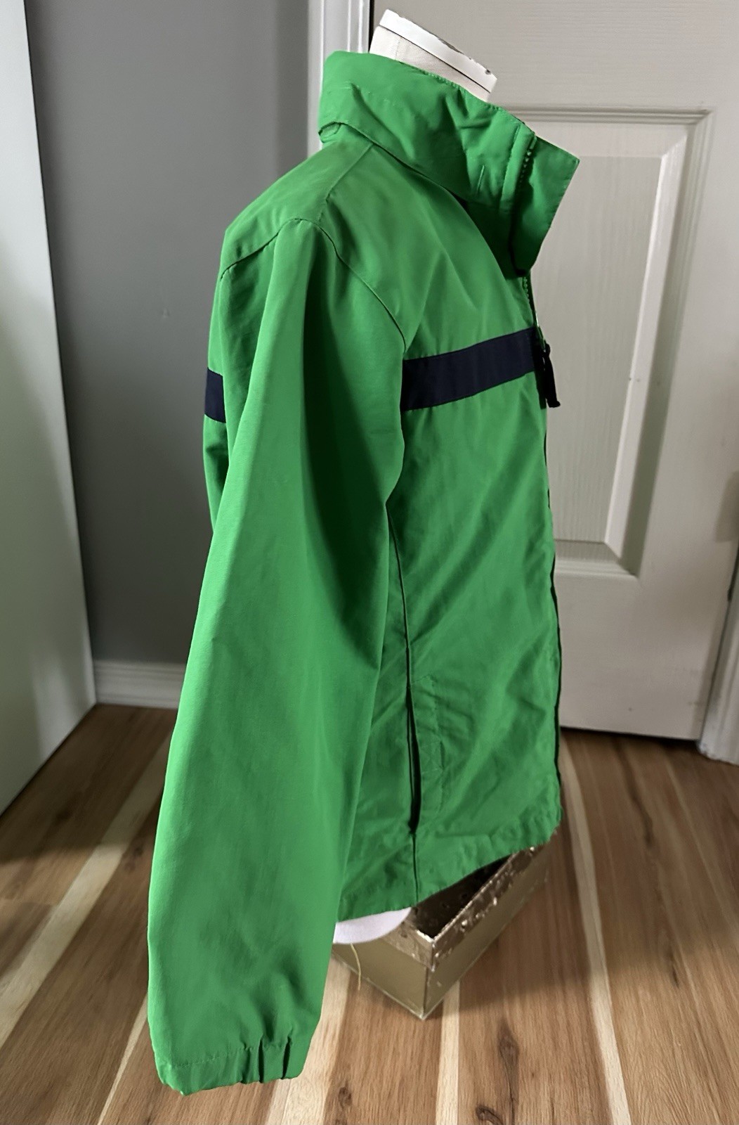 как выглядит Nautica Youth Size Large 8-10 Green /Blue Logo Windbreaker Jacket Hidden Hood фото