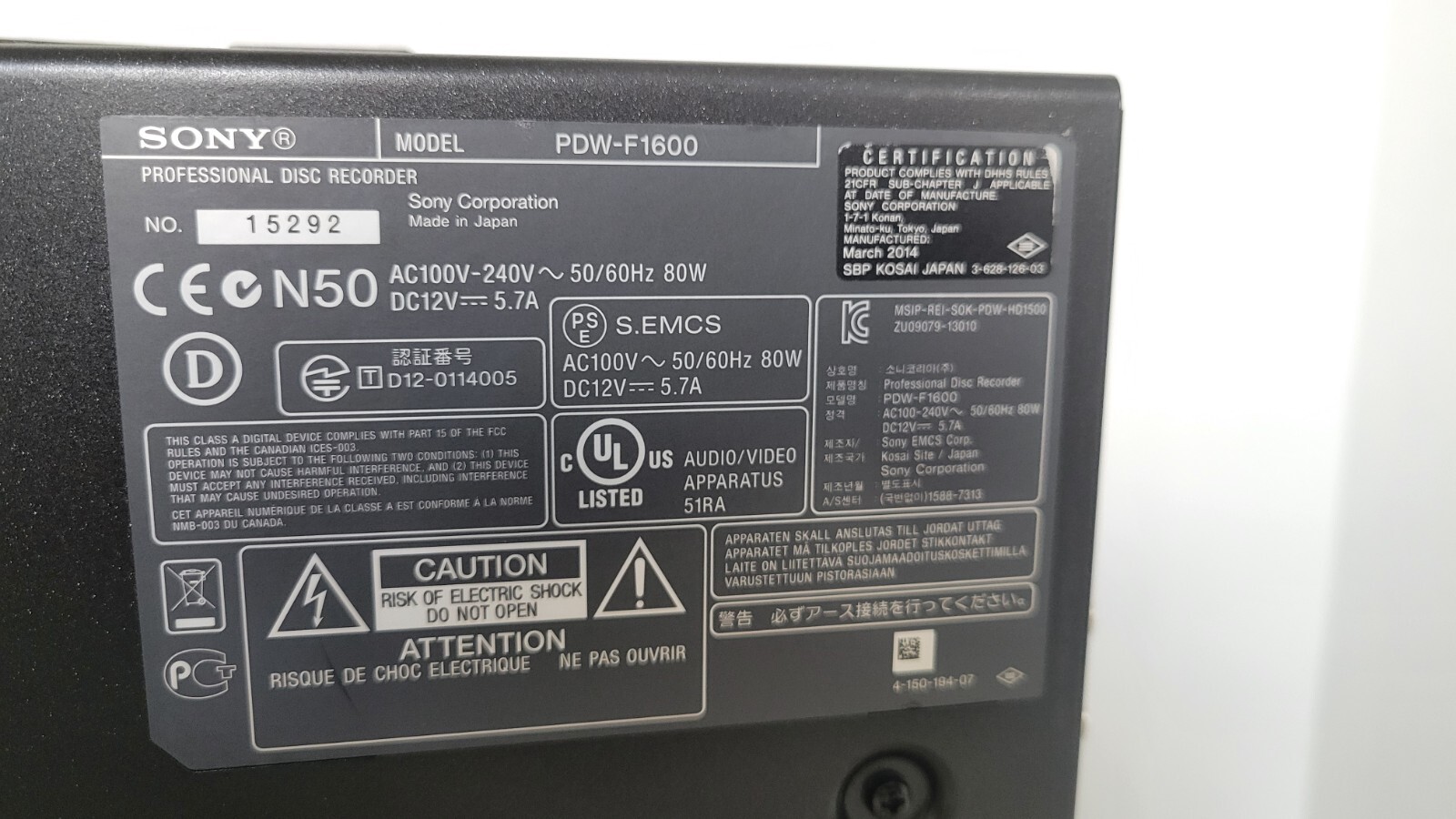 Sony PDW-F1600 XDCAM HD Recorder 9503 Operation Hours