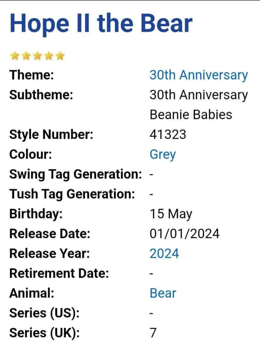 как выглядит HOPE II  2024 Ty Beanie Babies White Praying BEAR 30th Anniversary MWMT фото