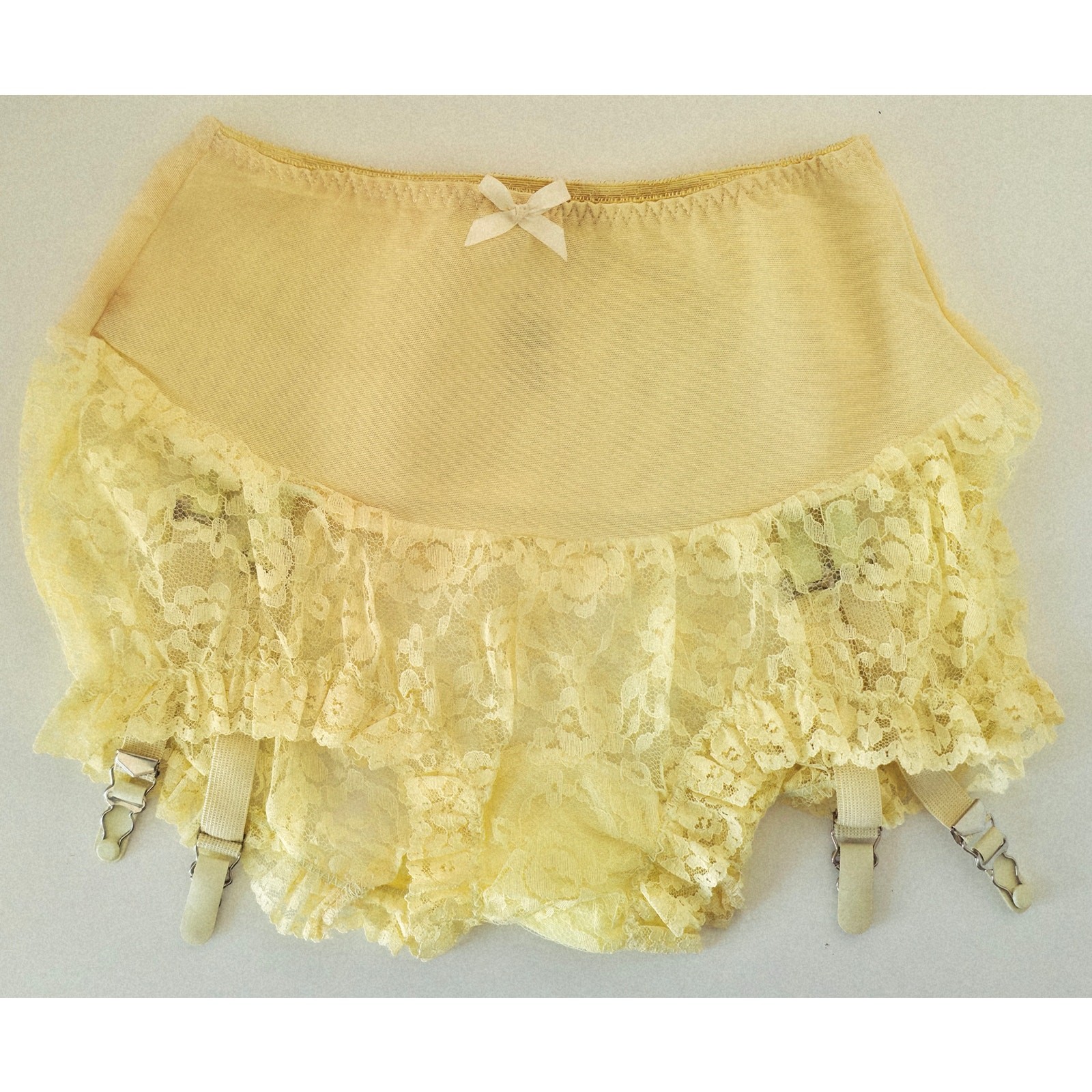 как выглядит VINTAGE NEW 1960s ILGWU Womens Yellow High Waist with Lace Garter Size L фото