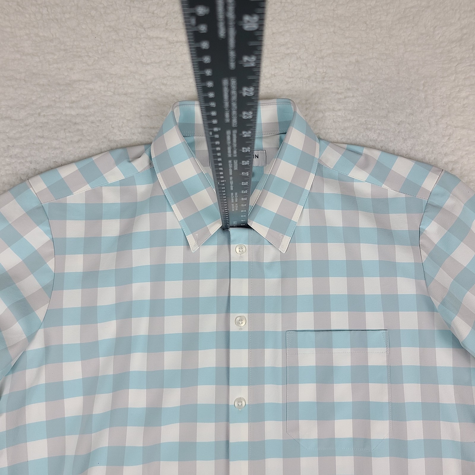 как выглядит Mizzen Main Shirt Mens XL Trim Fit Teal Gray Check Performance Button Up фото