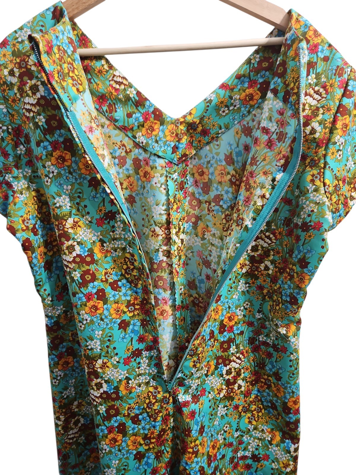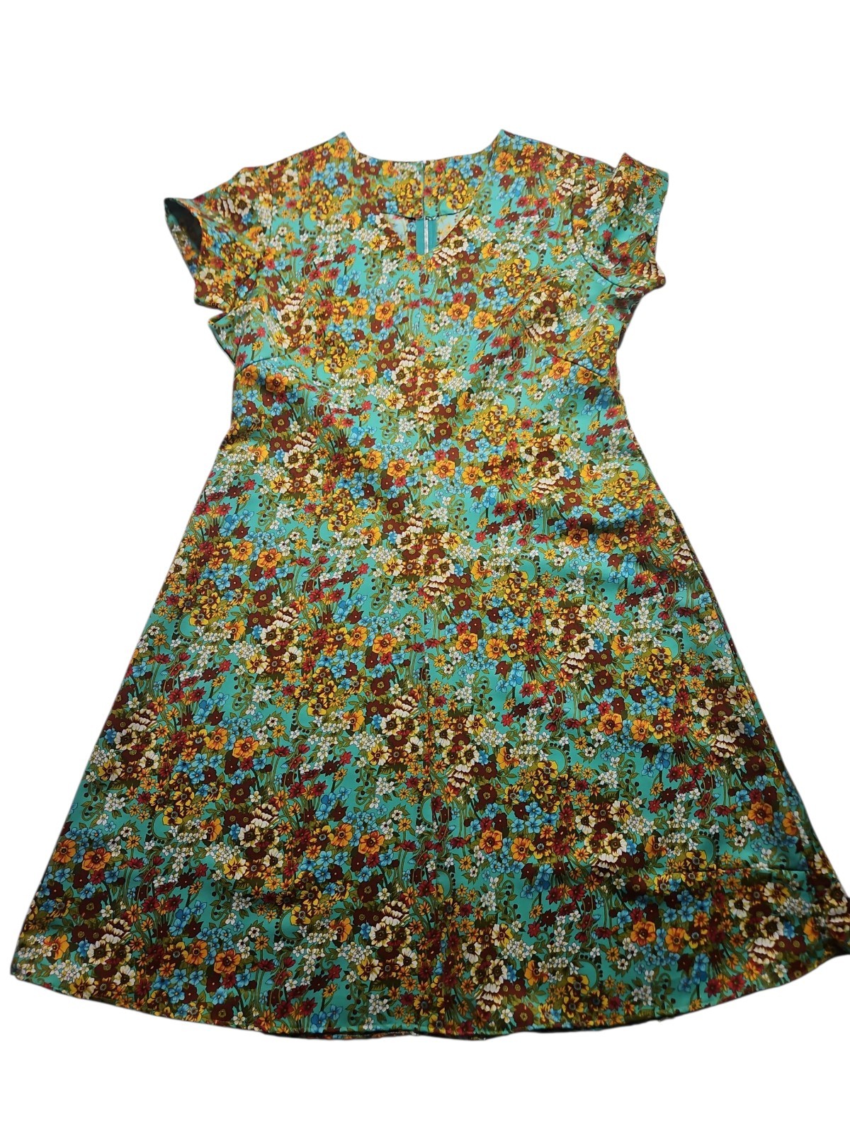 Vintage 1970s Handmade Floral A Line Midi Dress Retro Garden Party Size 14/16