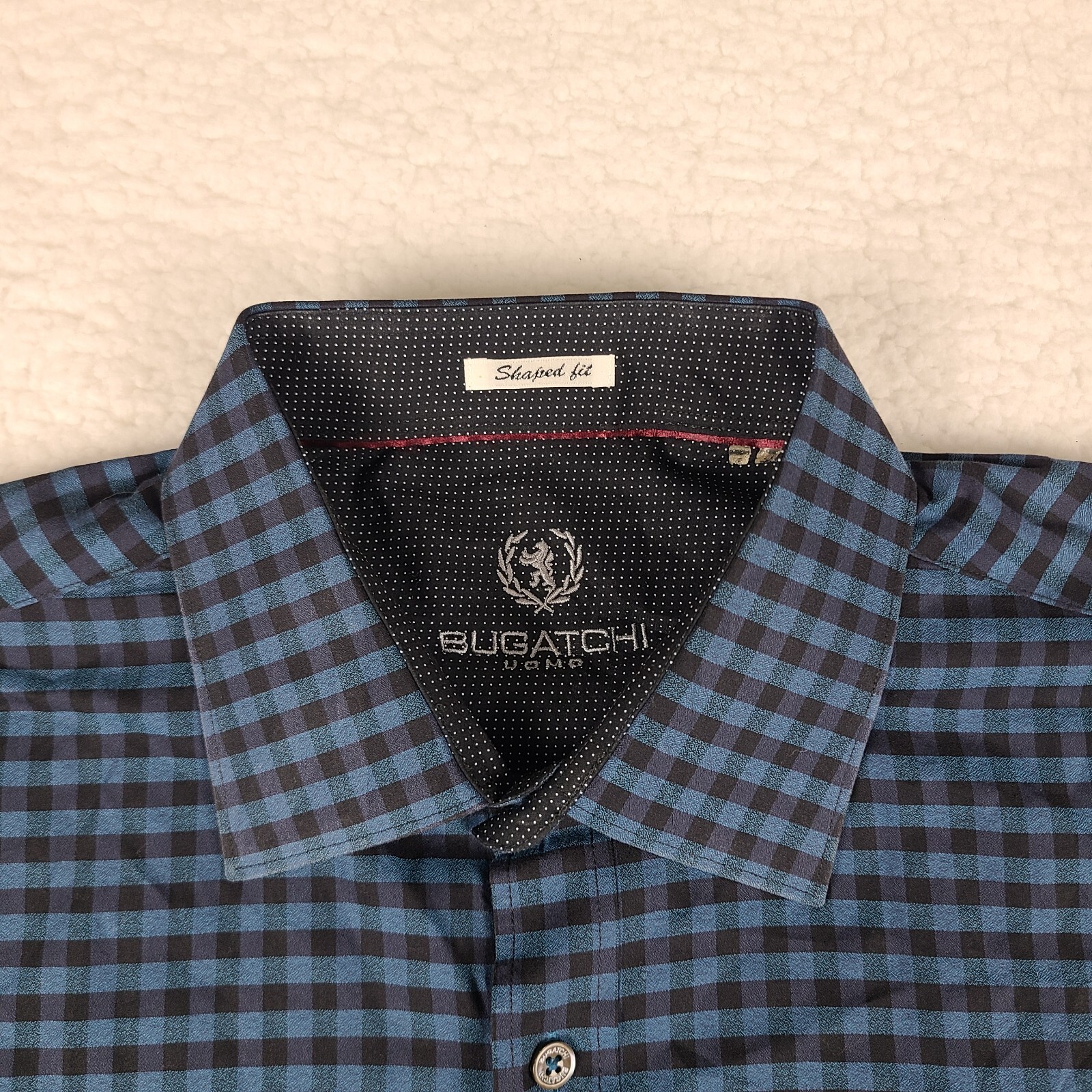 как выглядит Bugatchi Uomo Dress Shirt Mens XL Black Blue Teal Check Shaped Fit Button Up фото