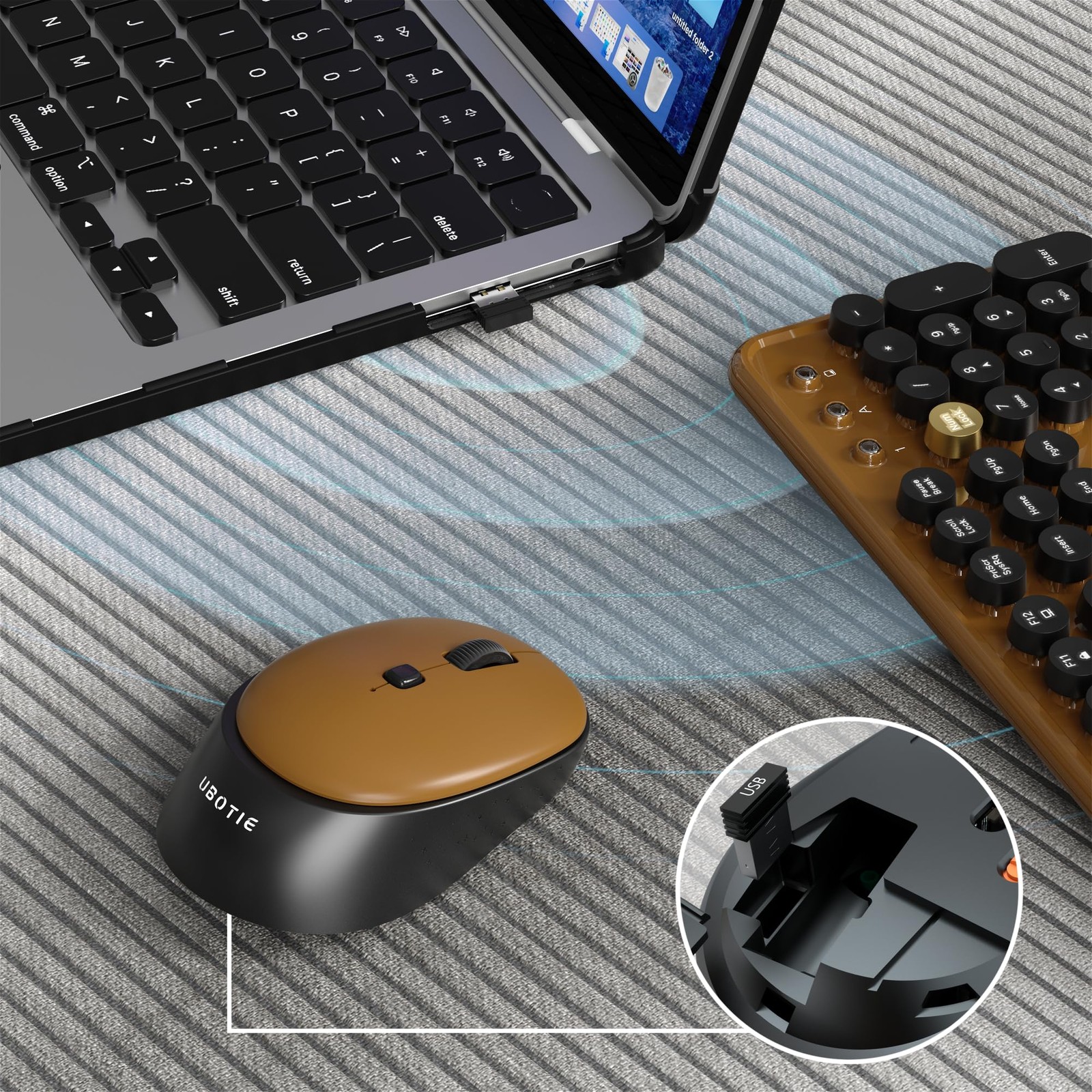 как выглядит Wireless Computer Keyboards Mouse Combos Round Keycaps Retro 2.4GHz Black Brown фото