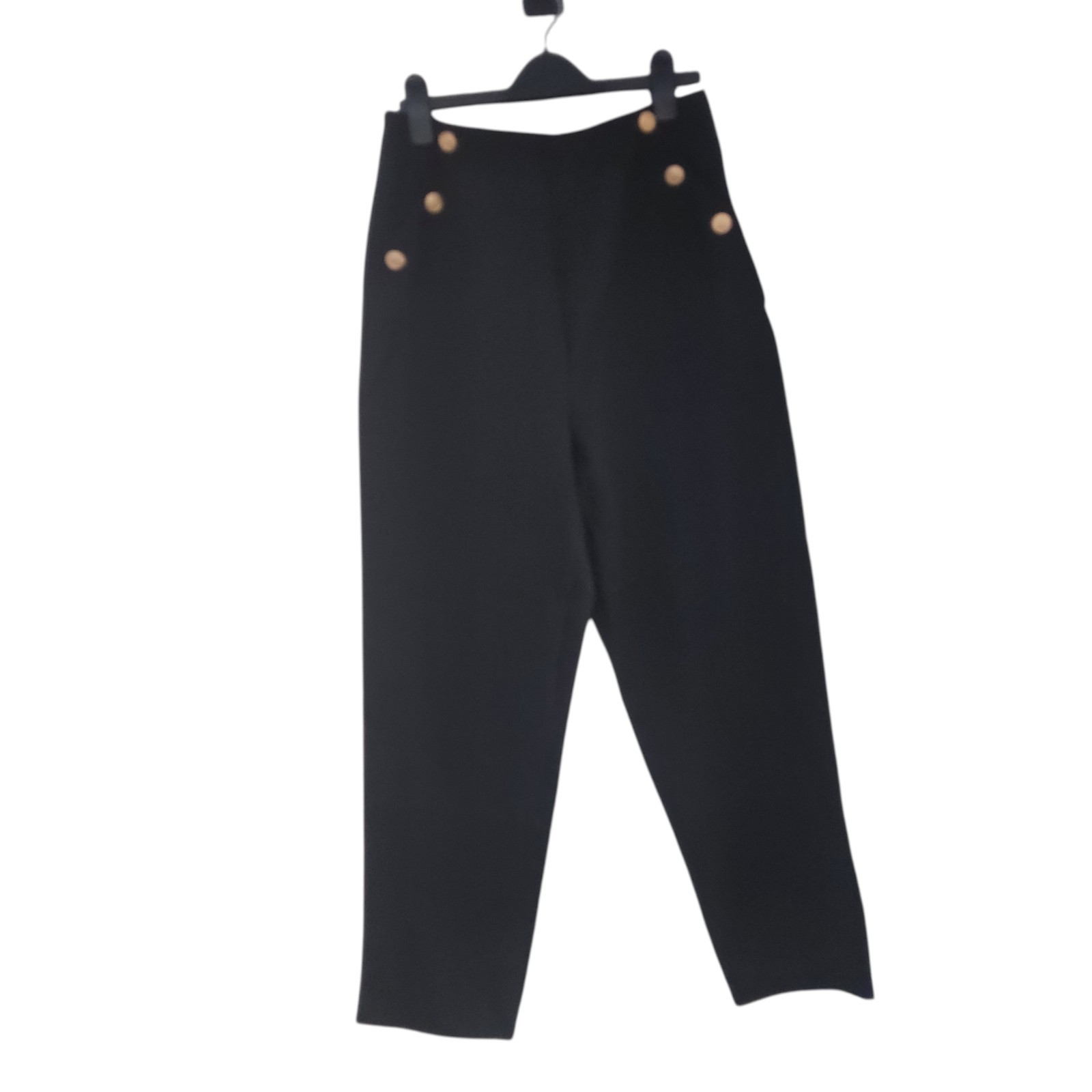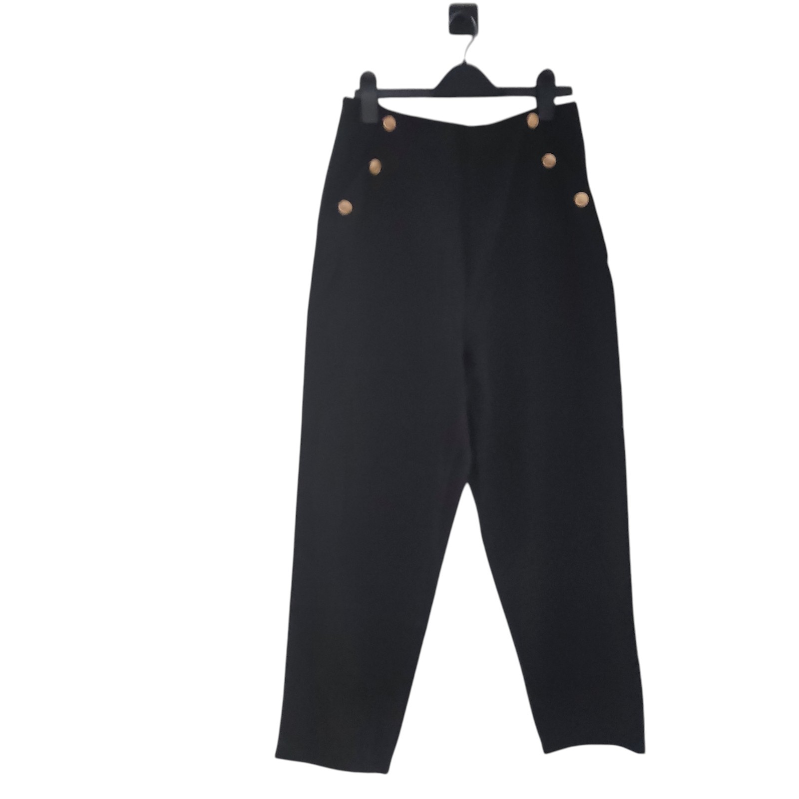 как выглядит shein womens trousers black gold button detail straight leg pockets size large фото
