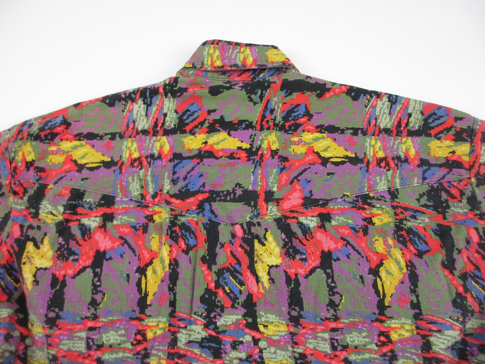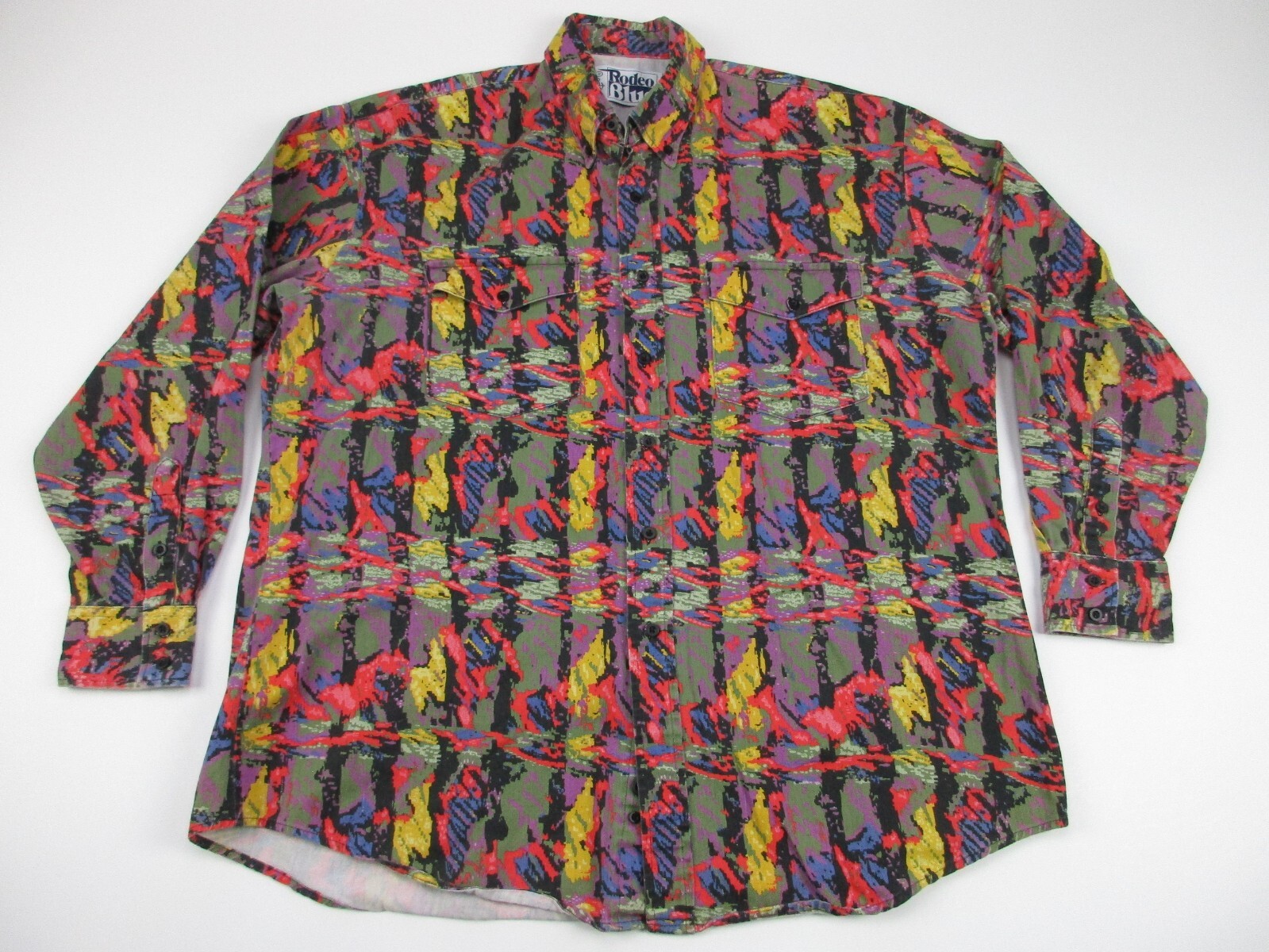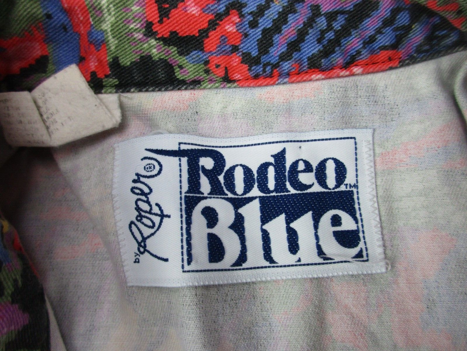 Mens XL Roper Rodeo Blue shirt brushpopper button paint splatter western vintage