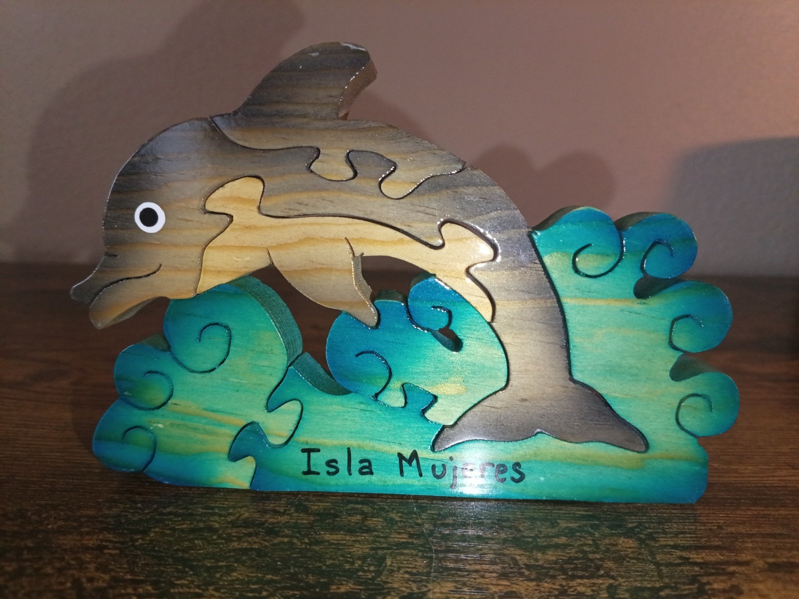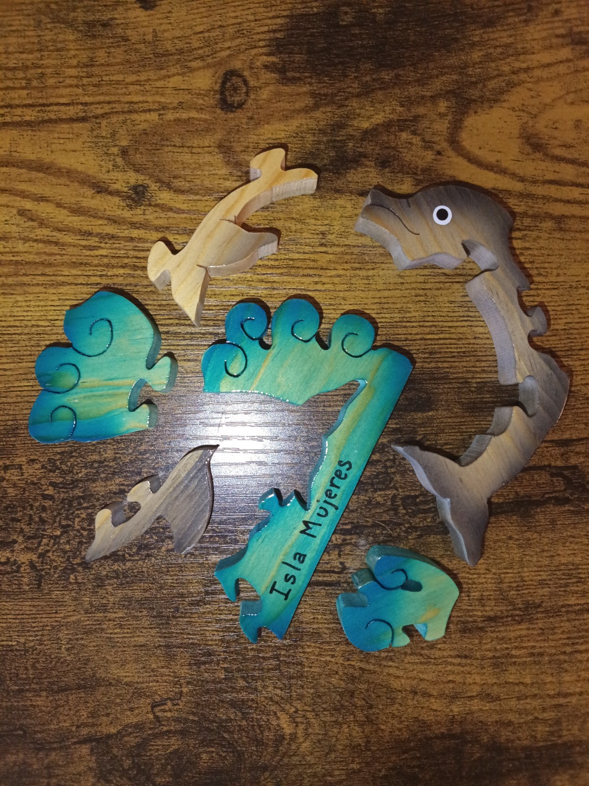 как выглядит Wooden Dolphin Puzzle Wood Waves Ocean Mexico Rompecabezas Isla Mujeres Travel фото