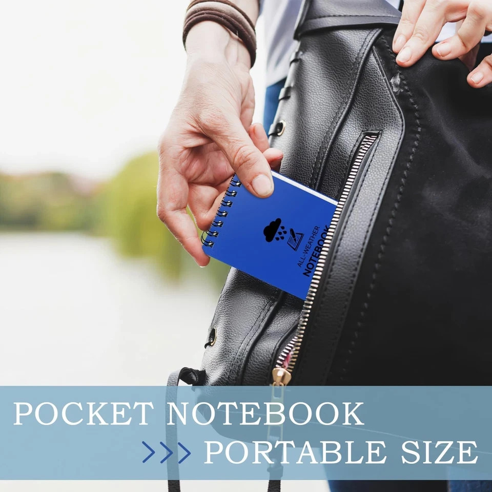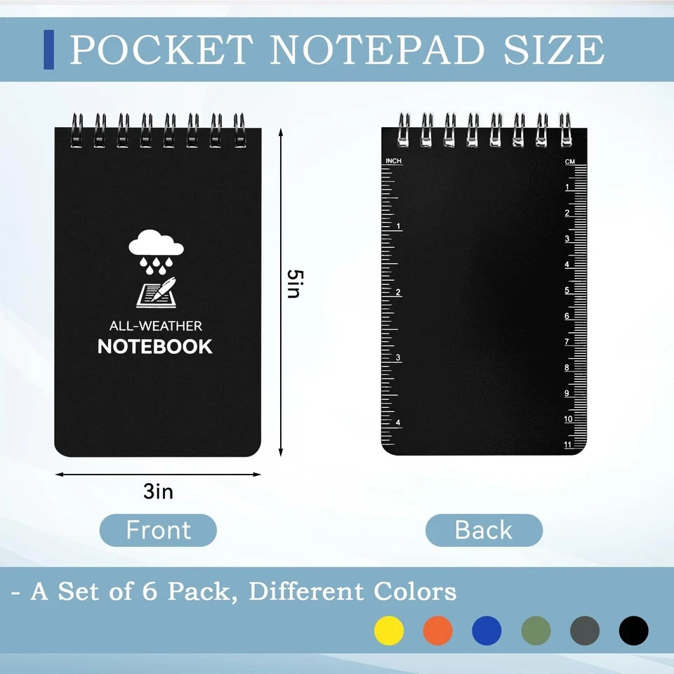 6 Pack Waterproof Notebook, 3 x 5 Pocket Notepad, Top-Spiral Weatherproof Not...