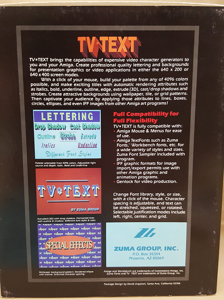 как выглядит TV TEXT v1.11 1987 Zuma Group Titling Text Presentation for Commodore Amiga BOX фото