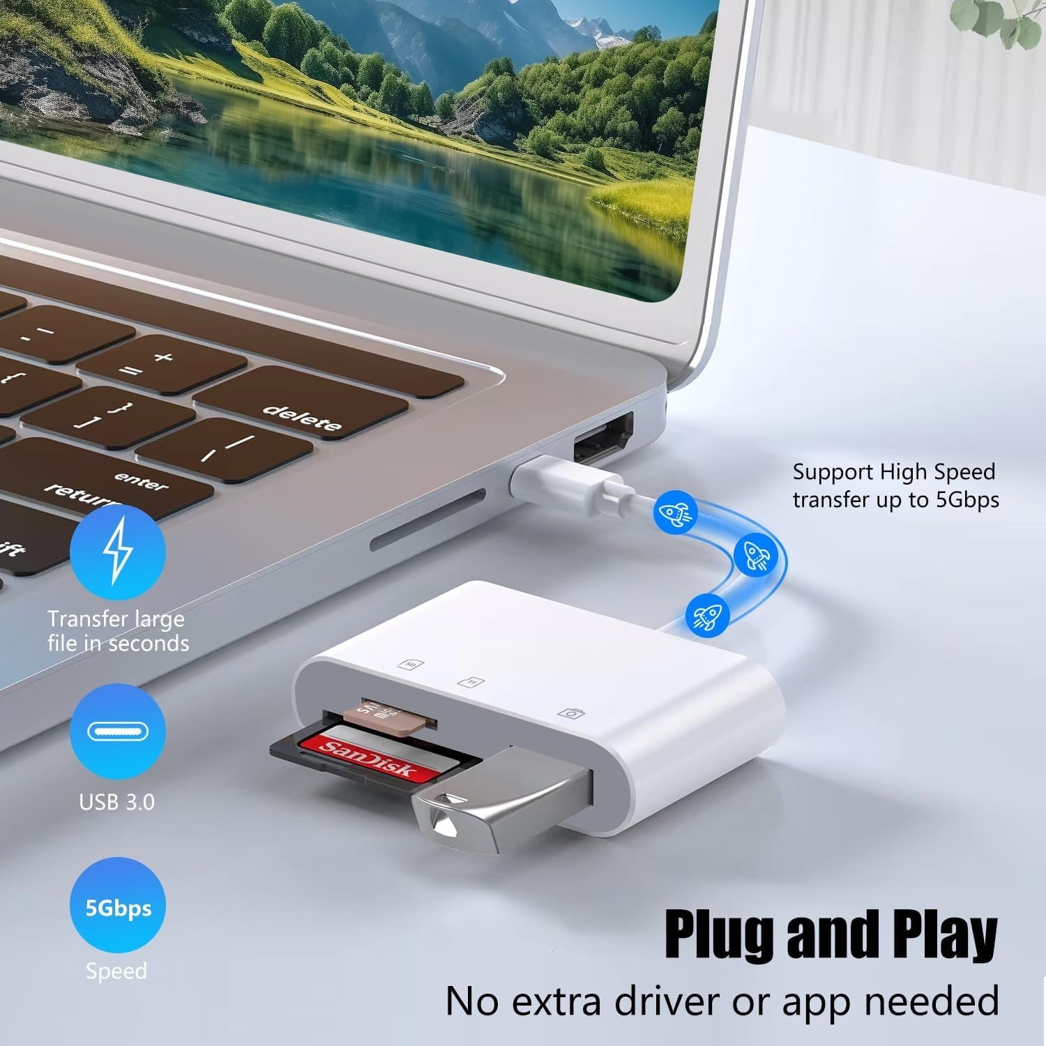 как выглядит Lector de tarjetas SD USB C para iPhone 15, 16, 17 iPad y Mac. Adaptador de tarj фото