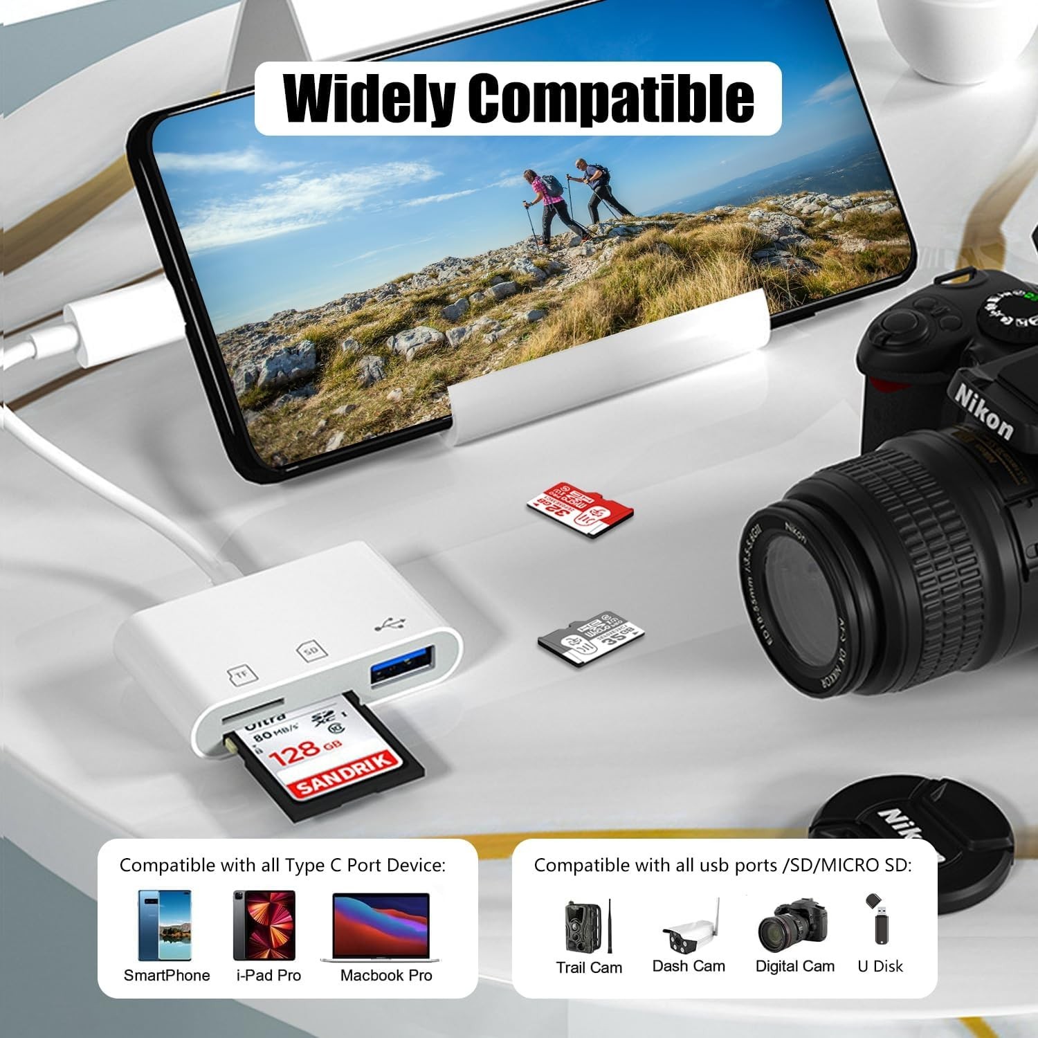 Lector de tarjetas SD USB C para iPhone 15, 16, 17 iPad y Mac. Adaptador de tarj