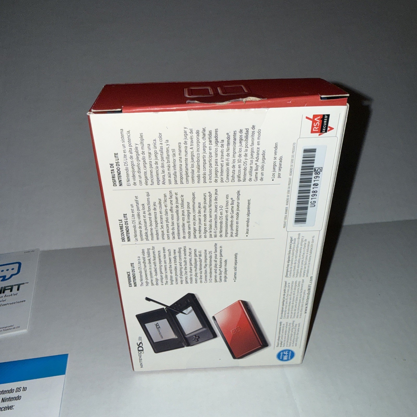 Nintendo DS Lite Handheld Console Crimson Red Box Some Paperwork Only