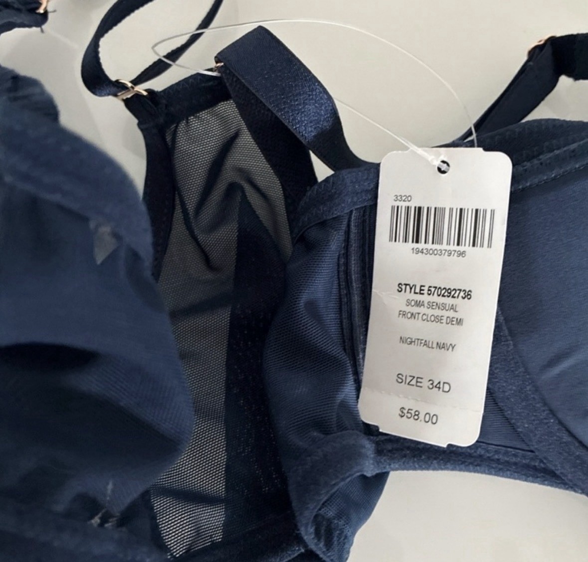как выглядит Soma Sensual Front Close Racerback Bra Size 34D Navy Blue фото