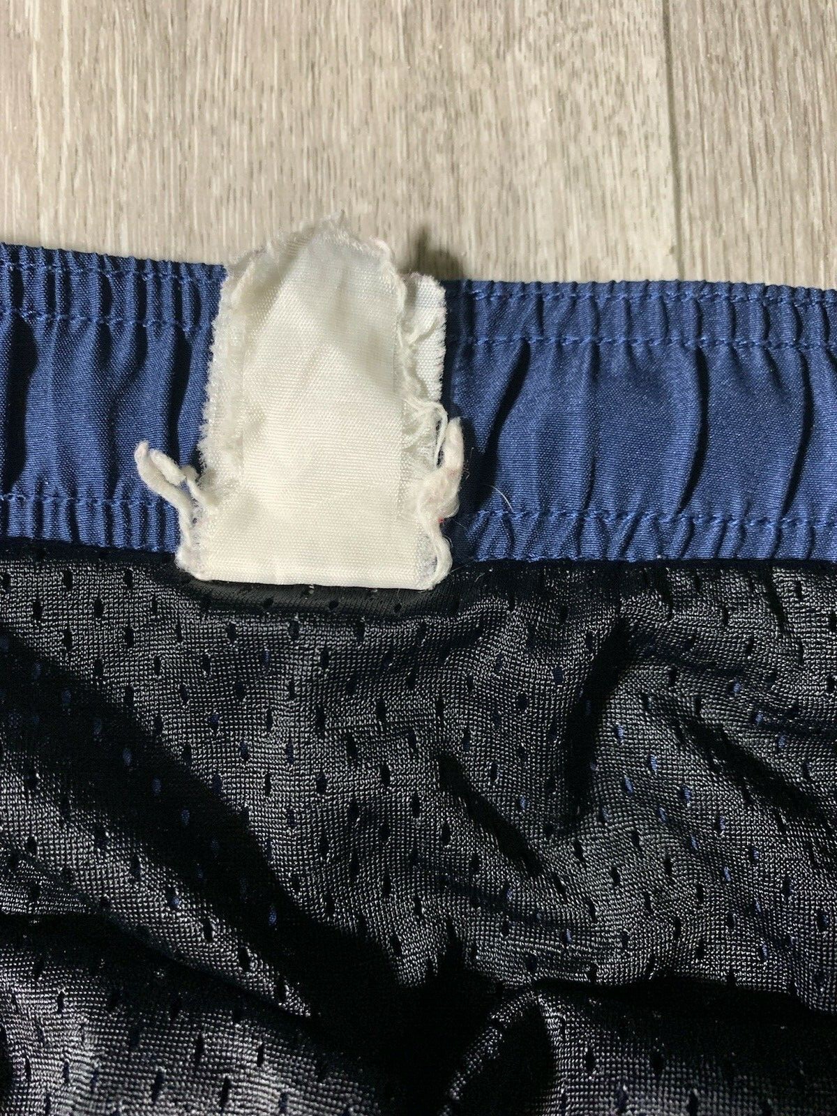 как выглядит Vintage Nike Swim Shorts Mens Large Navy Blue Large Swoosh Silver Tag Drawstring фото