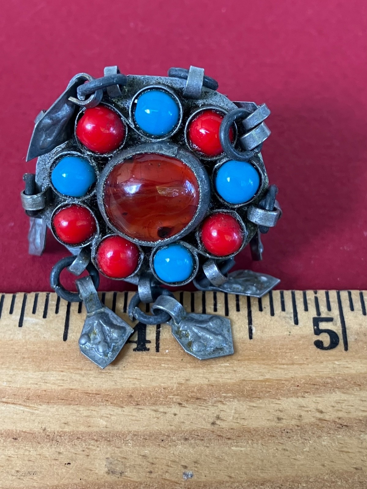 как выглядит Large Nepal / Tibetan Turquoise Red Coral Stone Ethnic Ring -- Size 8 фото