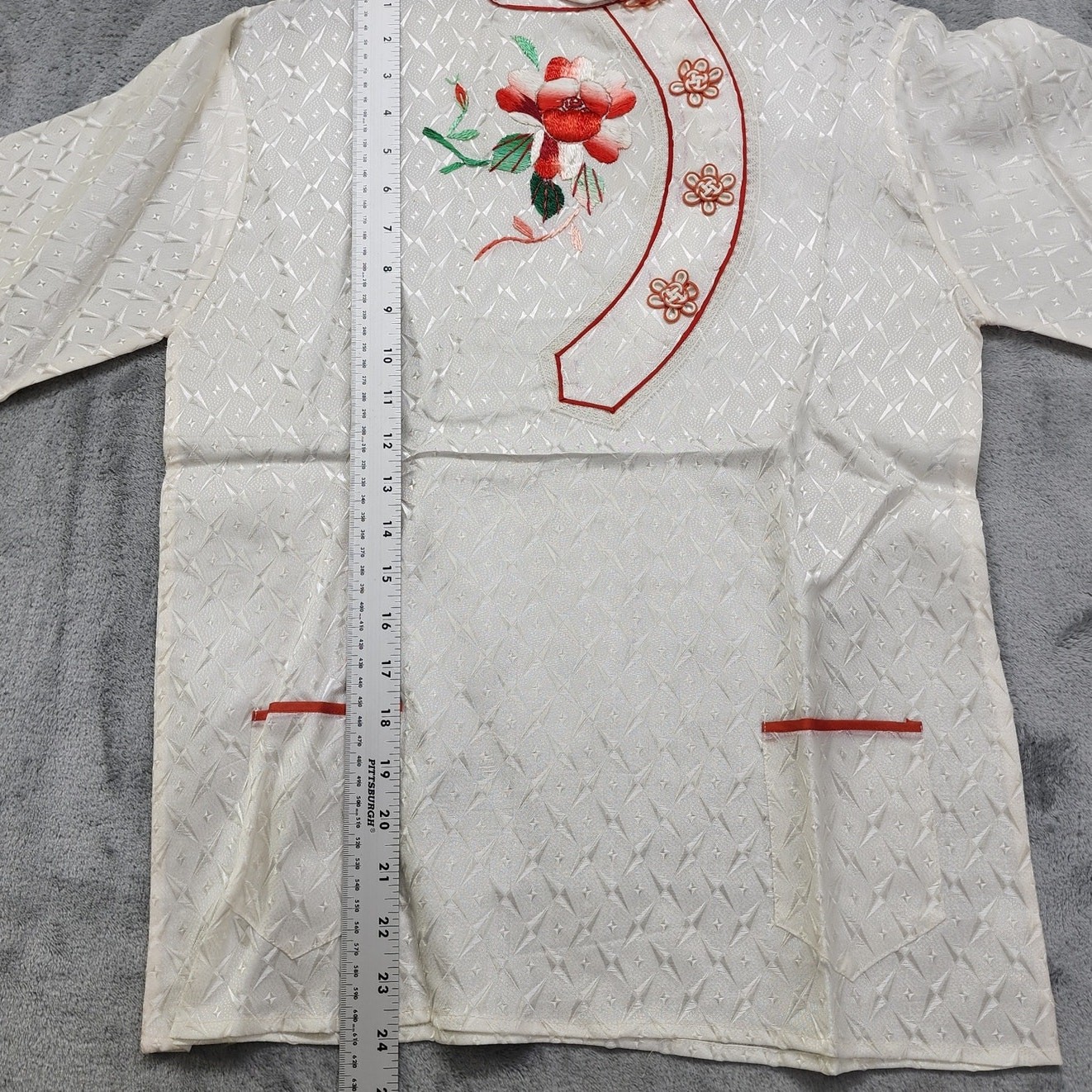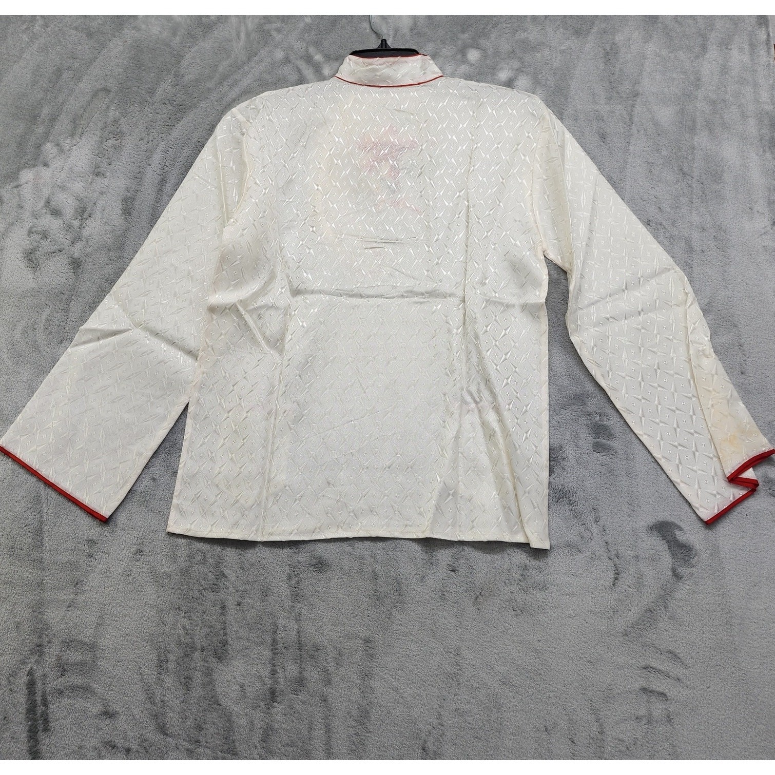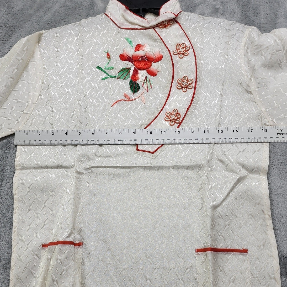 как выглядит Vintage Asian Pajama Set Size M White Red Silky Satin Jacquard Embroidered Crop фото